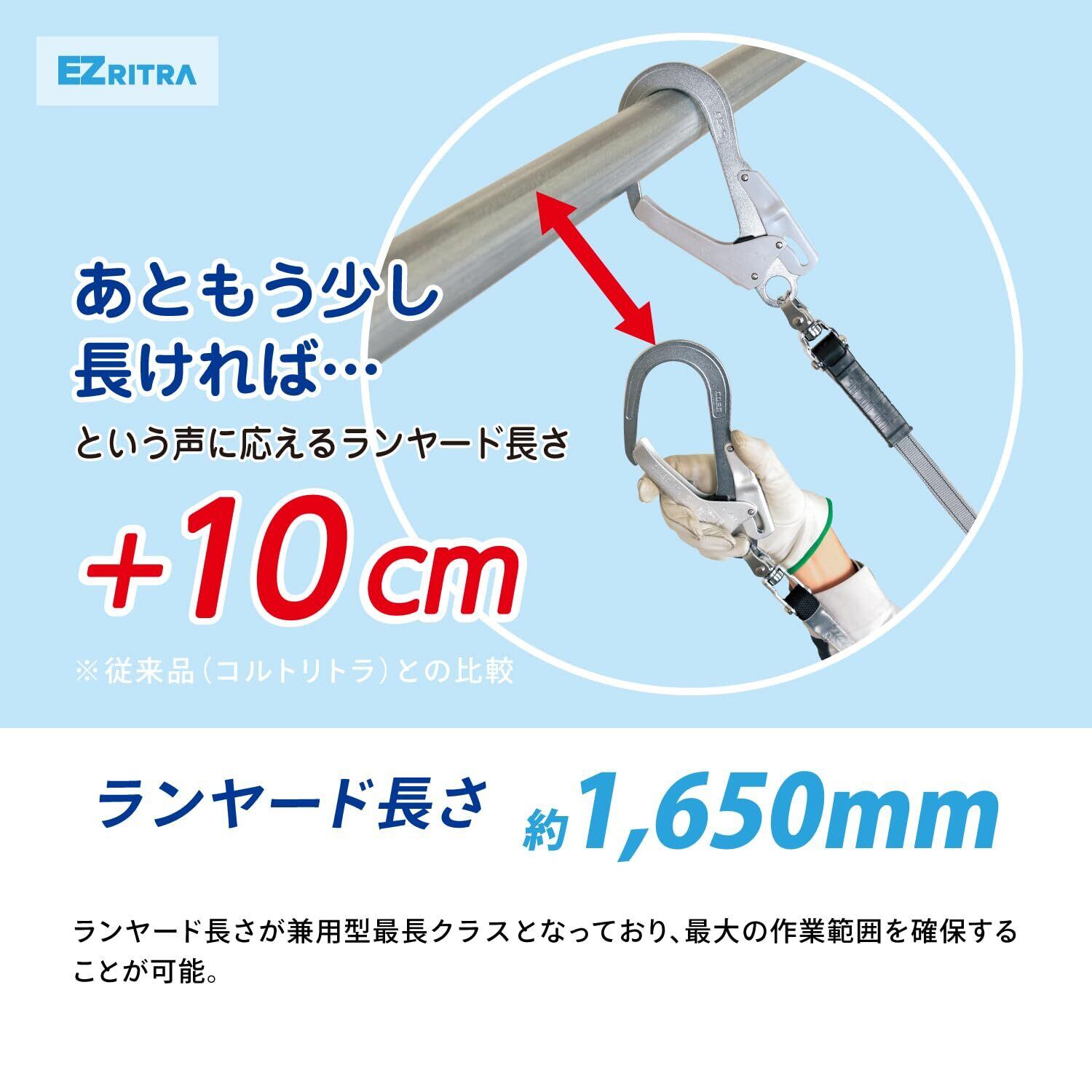 ランヤード長さが兼用型最長クラスとなっており、最大の作業範囲を確保することが可能。
