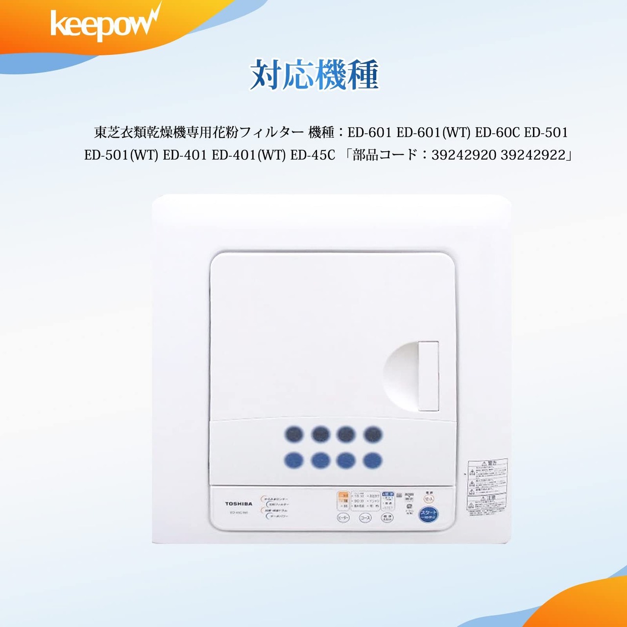 KEEPOW 乾燥機フィルター ED-608東芝衣類乾燥機用 39242920 39242922 対応 中間フィルター 花粉フィルター 互換不織布フィルター TOSHIBA乾燥機用消耗品 2枚入