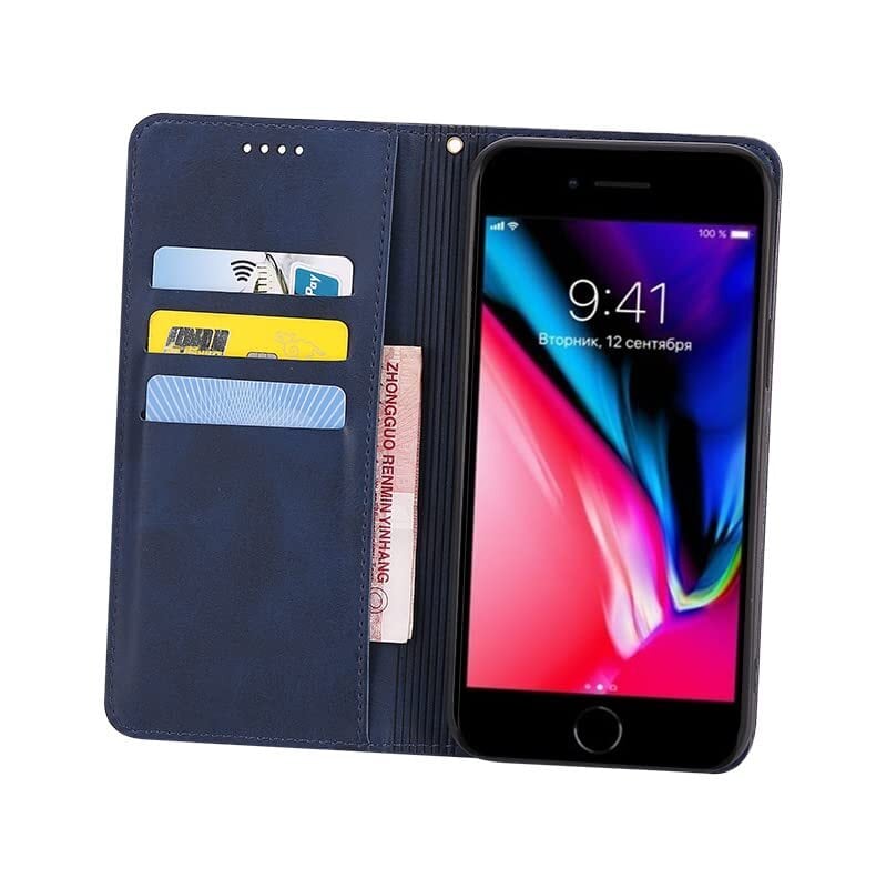 適用 iPhone SE (第2世代/第3世代) ケース 手帳型 (4.7インチ対応) iphone8 用 iphone7 用 手帳型 ケース カバー PUレザー カード収納 財布型 耐衝撃 ケース マグネット スタンド機能付き 5色 (適用 iPhone 7/8/SE2(2020)/SE3(2022)ケース 手帳型) (深い青)