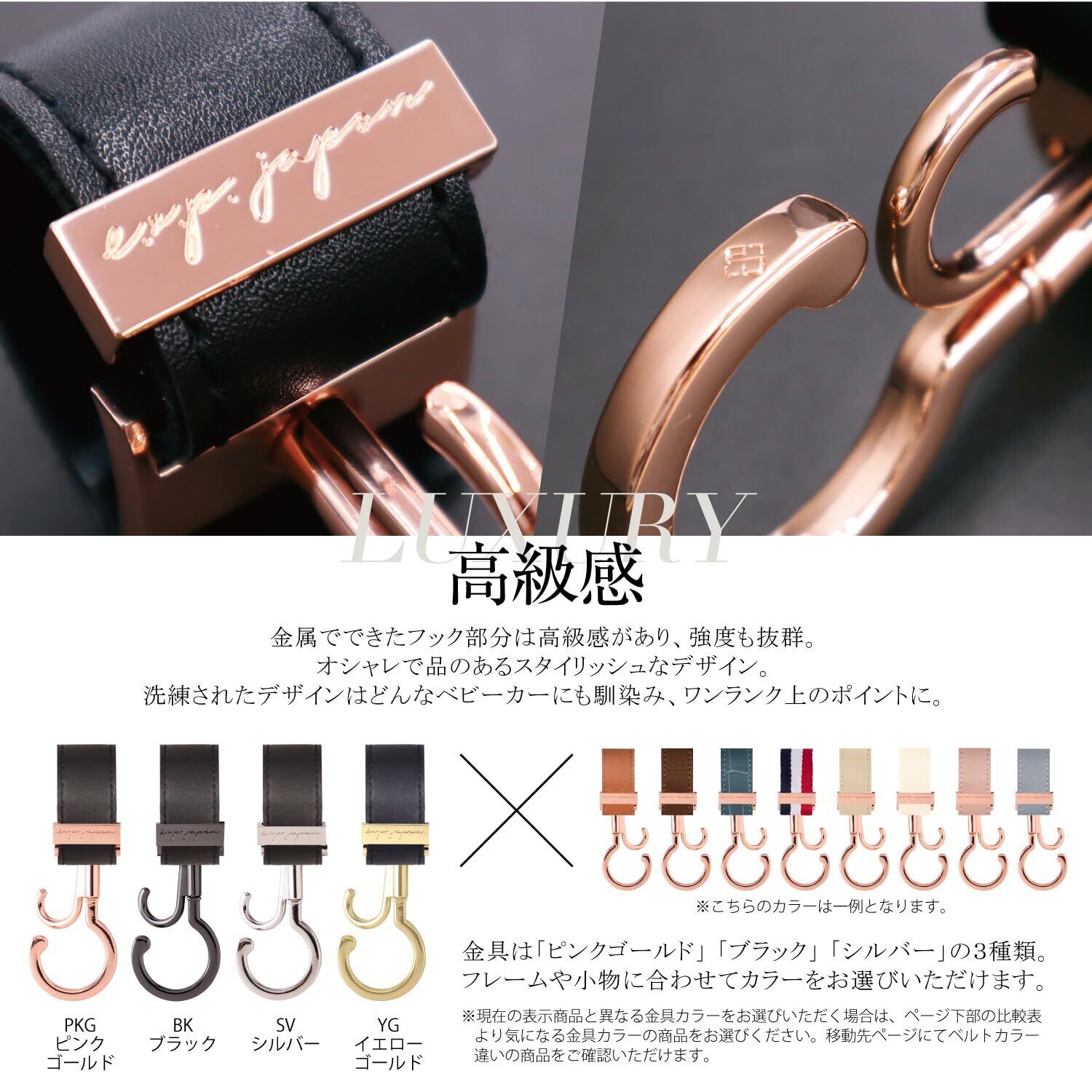 e.x.p.japon PP バギーフック SV-合皮シャンパン 360度回転 ダブルフック ベビーカー 荷物フック 耐荷重約60キロ ベビーカーフック 2本入り bgh16sv