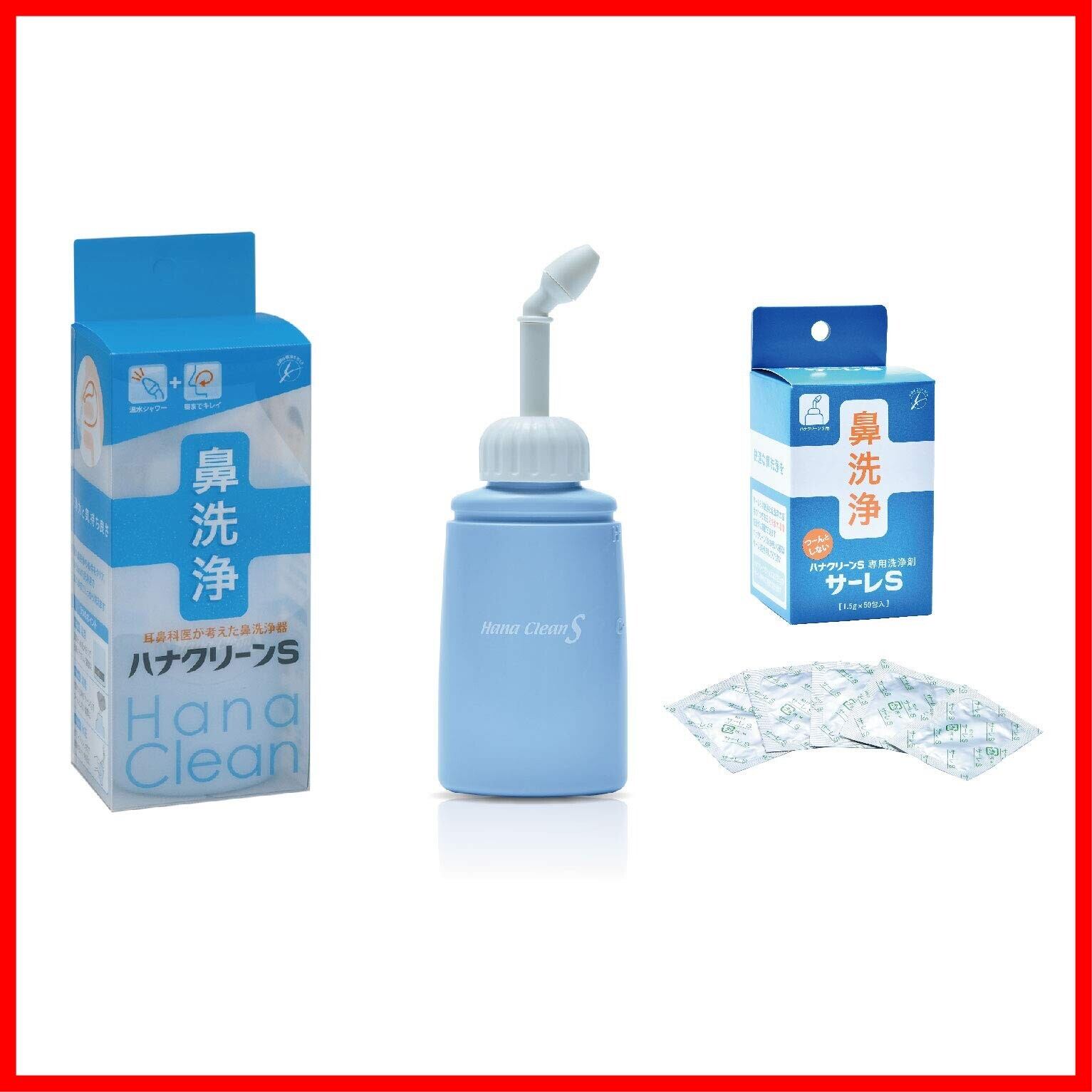 鼻洗浄器 ハナクリーンS 洗浄剤60包付セット(本体付属10包+専用洗浄剤サーレS50包)