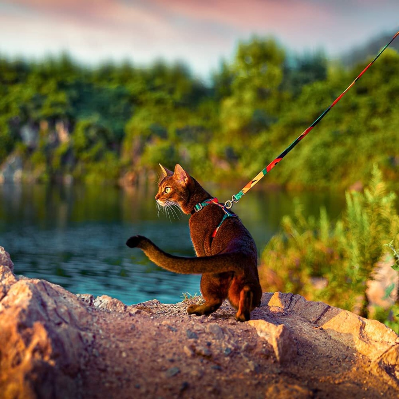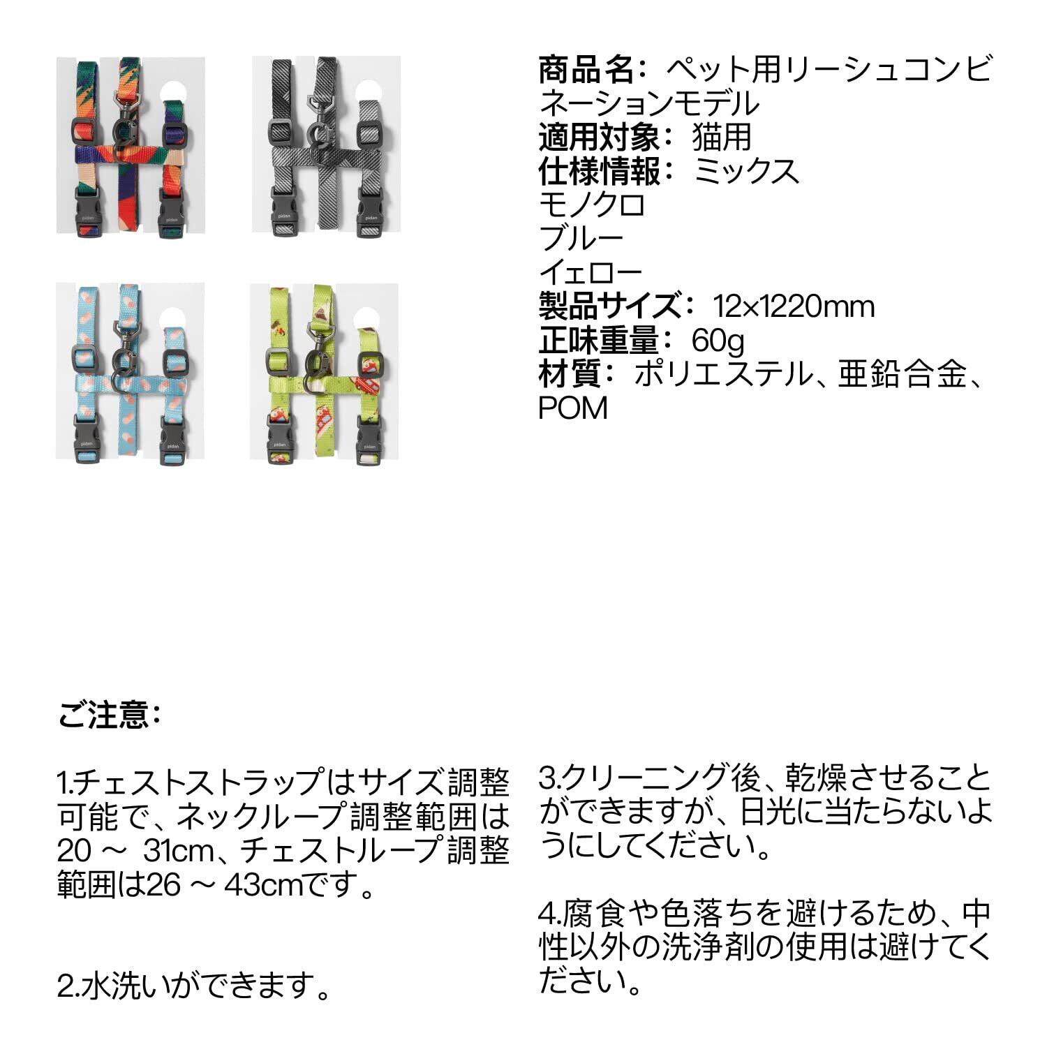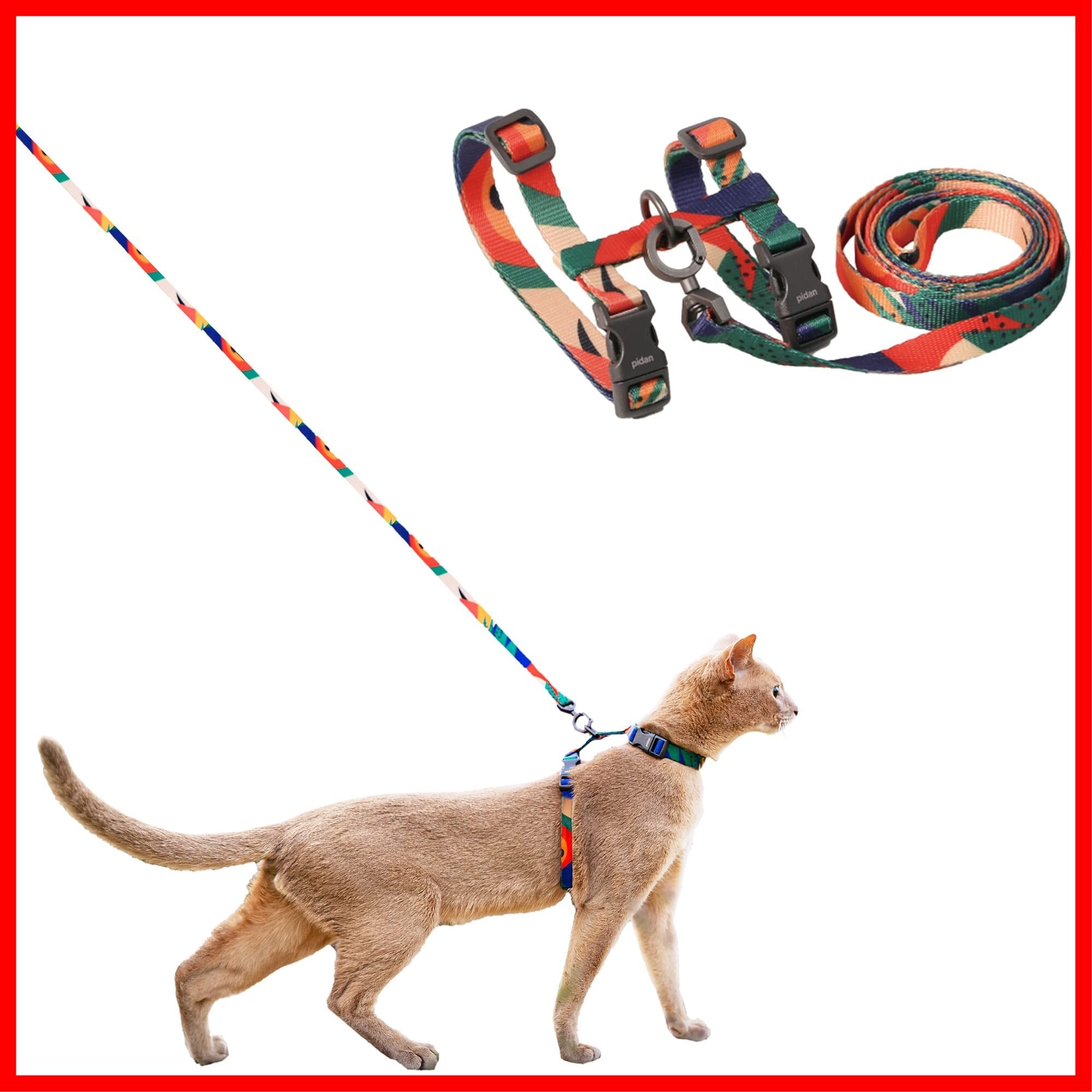 pidan 猫 ハーネス 抜けない ダブルロック 簡単 猫 リード ハーネス セット 2点セット ワンタッチ 調整できる 猫用ハーネス (A2 カラフル)
