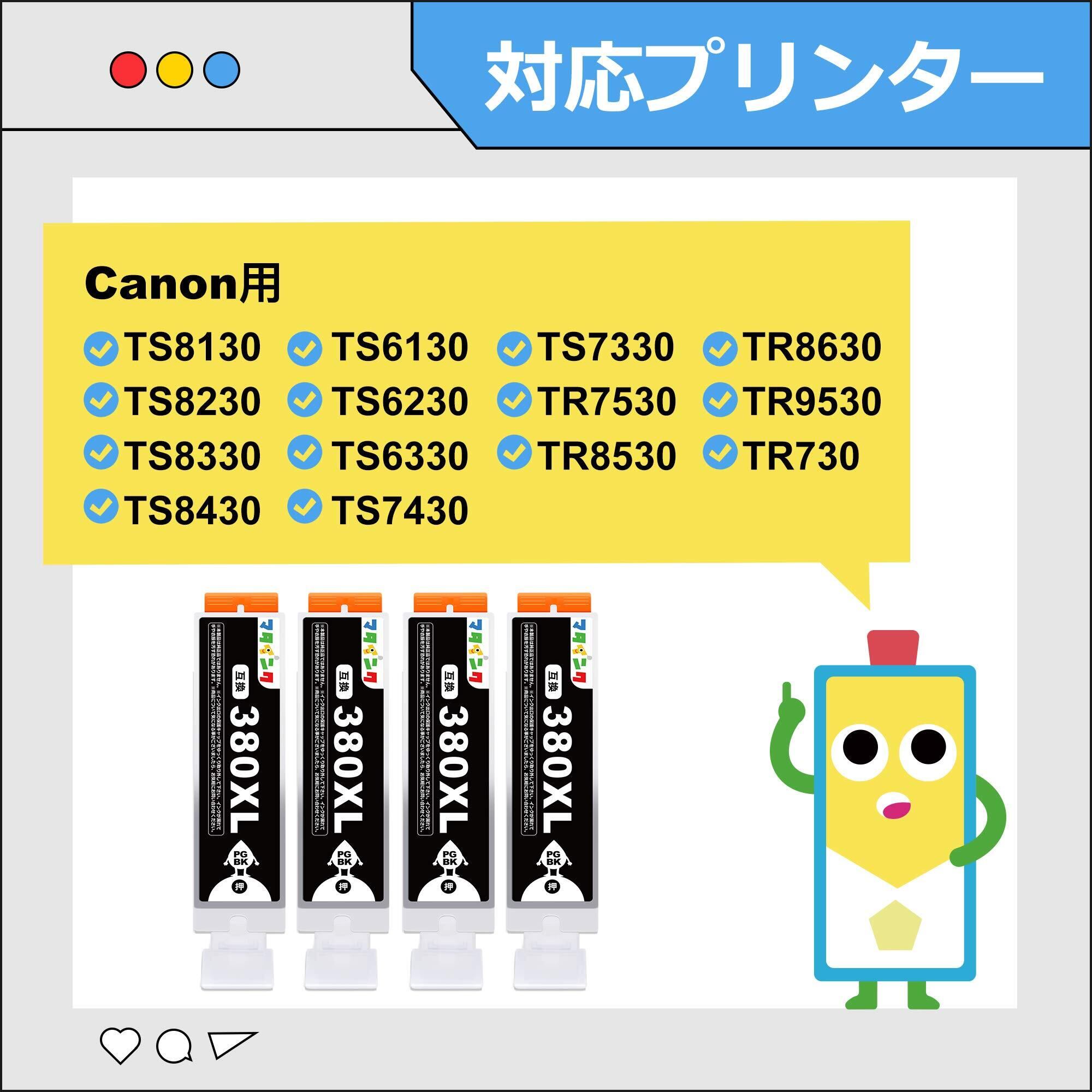 マタインク BCI-380XL キヤノン(Canon)用 インク 380PGBK 大容量タイプ 四本セット 互換インク 対応機種:TS6130 TS6230 TS6330 TS7330 TR7530 TR8530 TR9530 TR703 TS8130 TS8230 TS8330 TS8430 プリンターインク