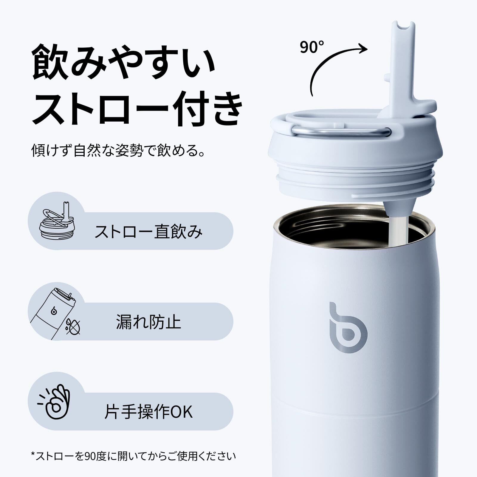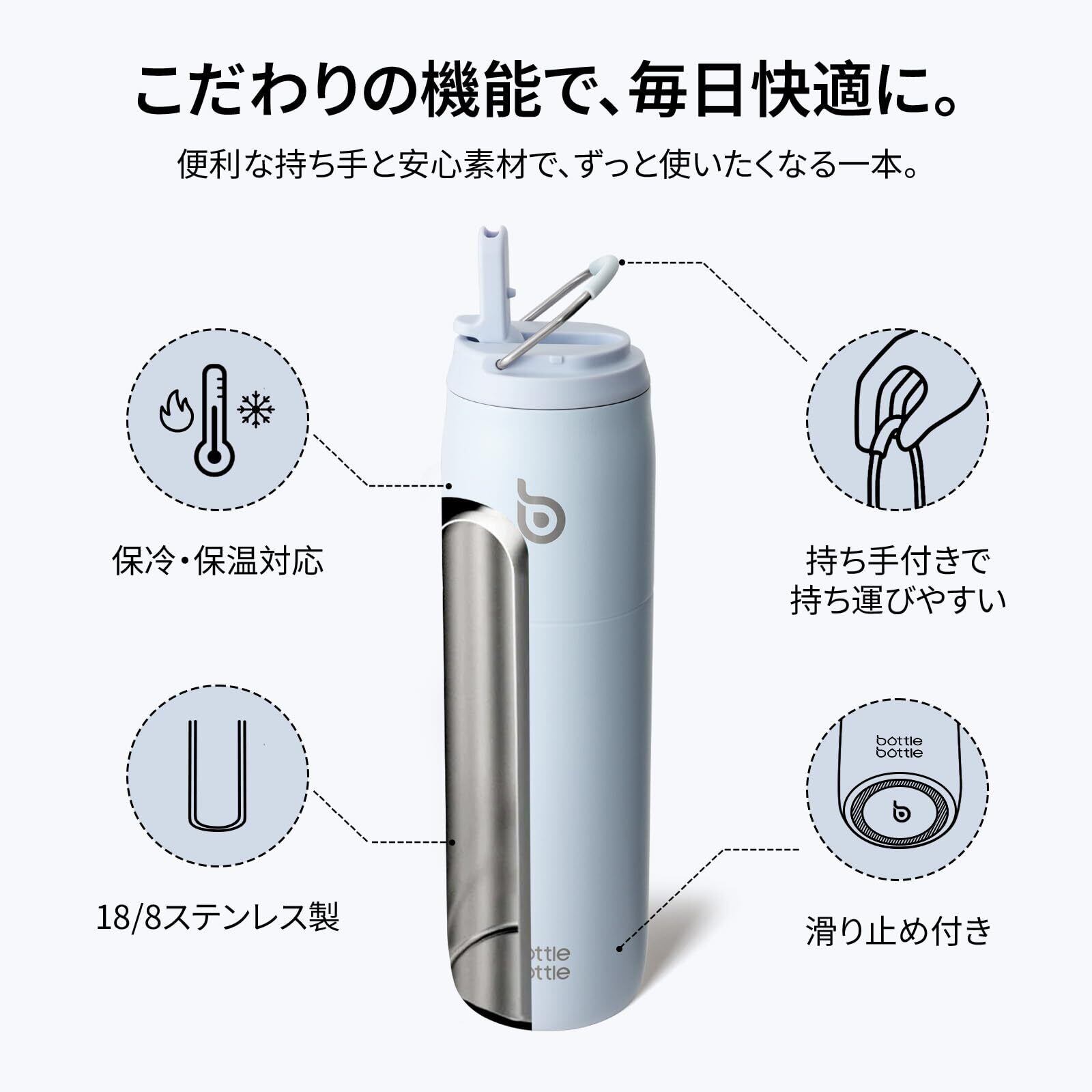 BOTTLE BOTTLE 水筒 1リットル 大容量 1000ml ストロー付き 直飲み 保温保冷 真空断熱 子供 大人 持ち手付き おしゃれ 1L ボトル ステンレス 魔法瓶 二重構造 女の子 男の子 持ち運び スポーツ アウトドア ライトブルー