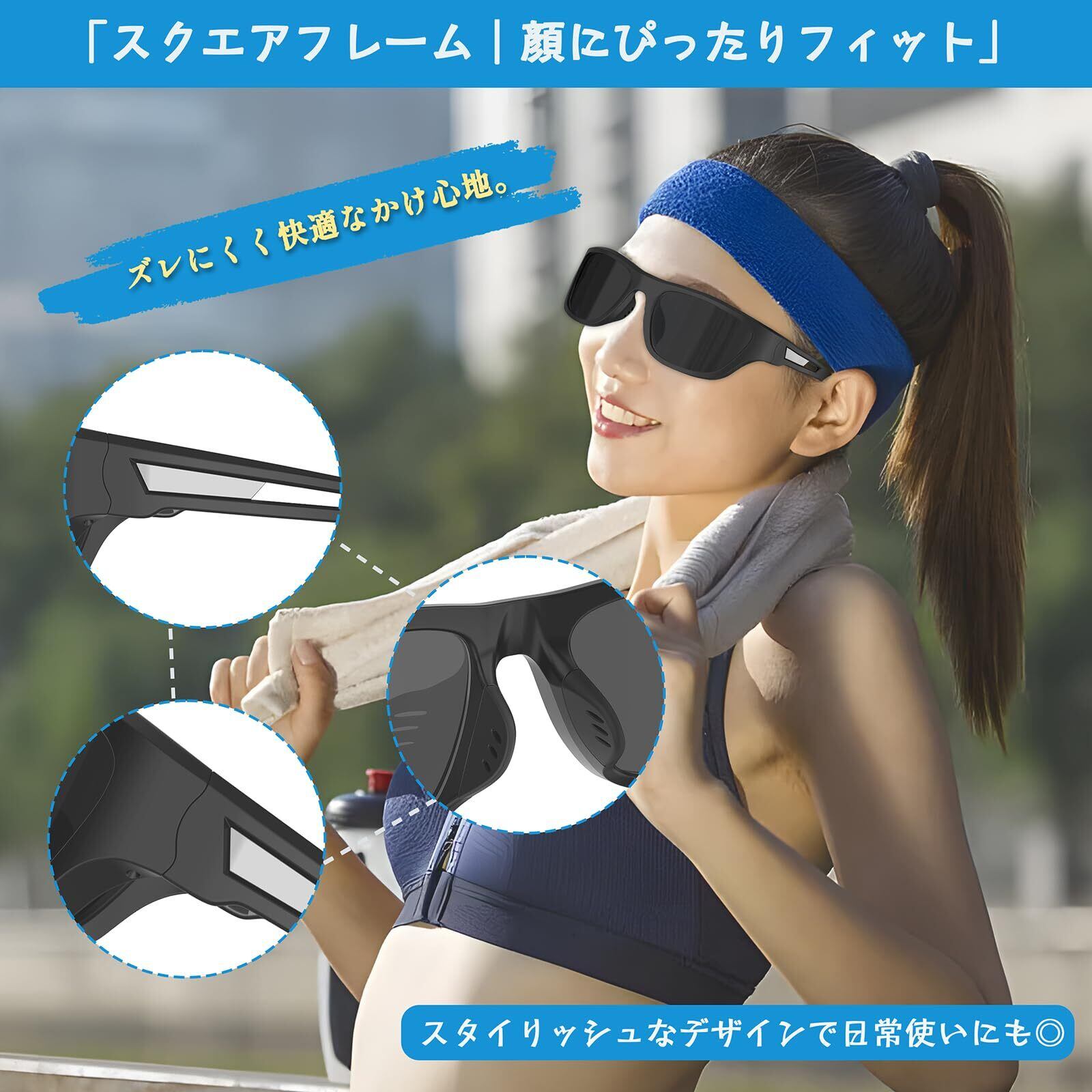 【軽量&ズレにくい快適設計】 超軽量デザインと柔軟なフレーム構造により、長時間の着用でも耳や鼻への負担が少なく快適。運動中もフィット感が高く、ズレにくい設計でアクティブな場面にも最適です。