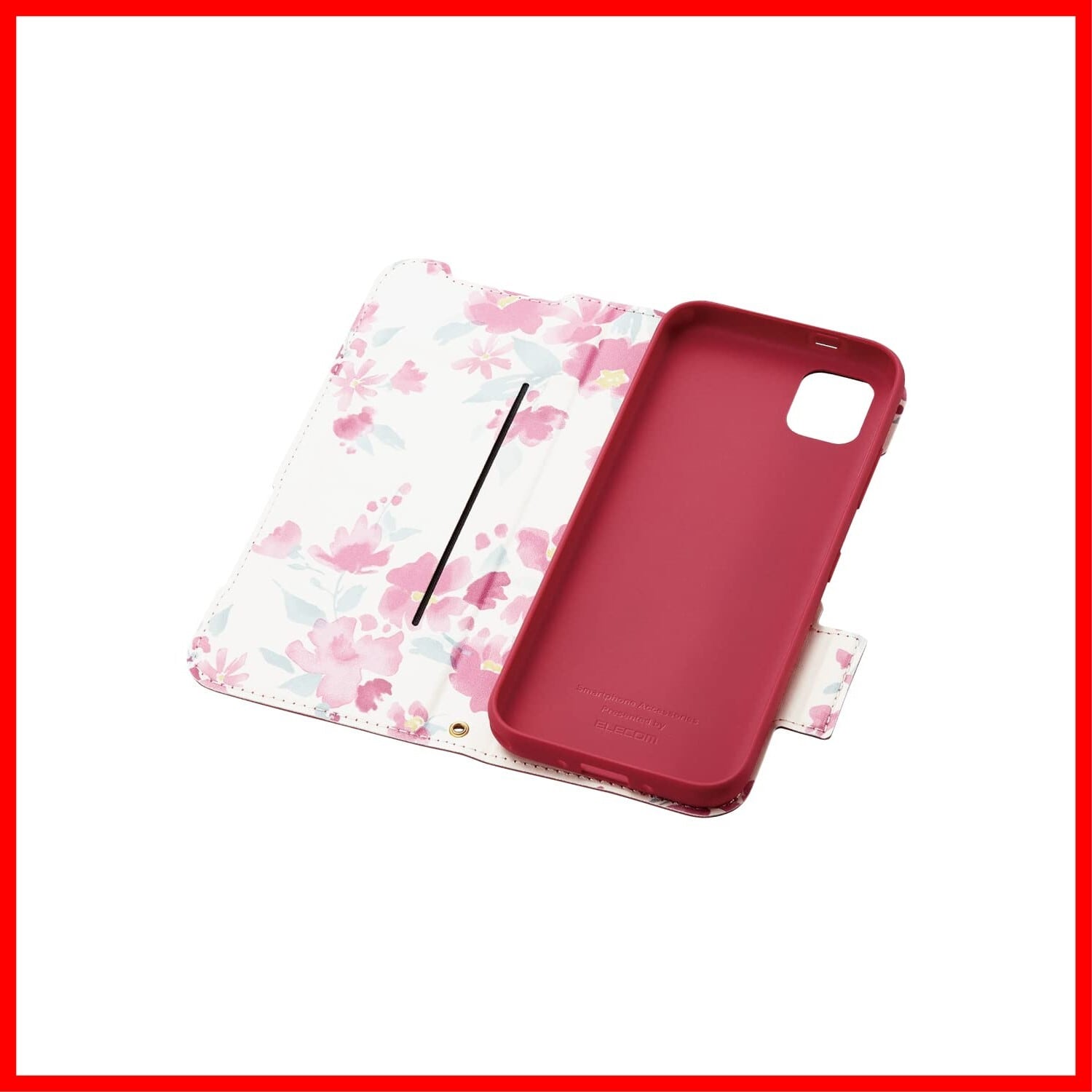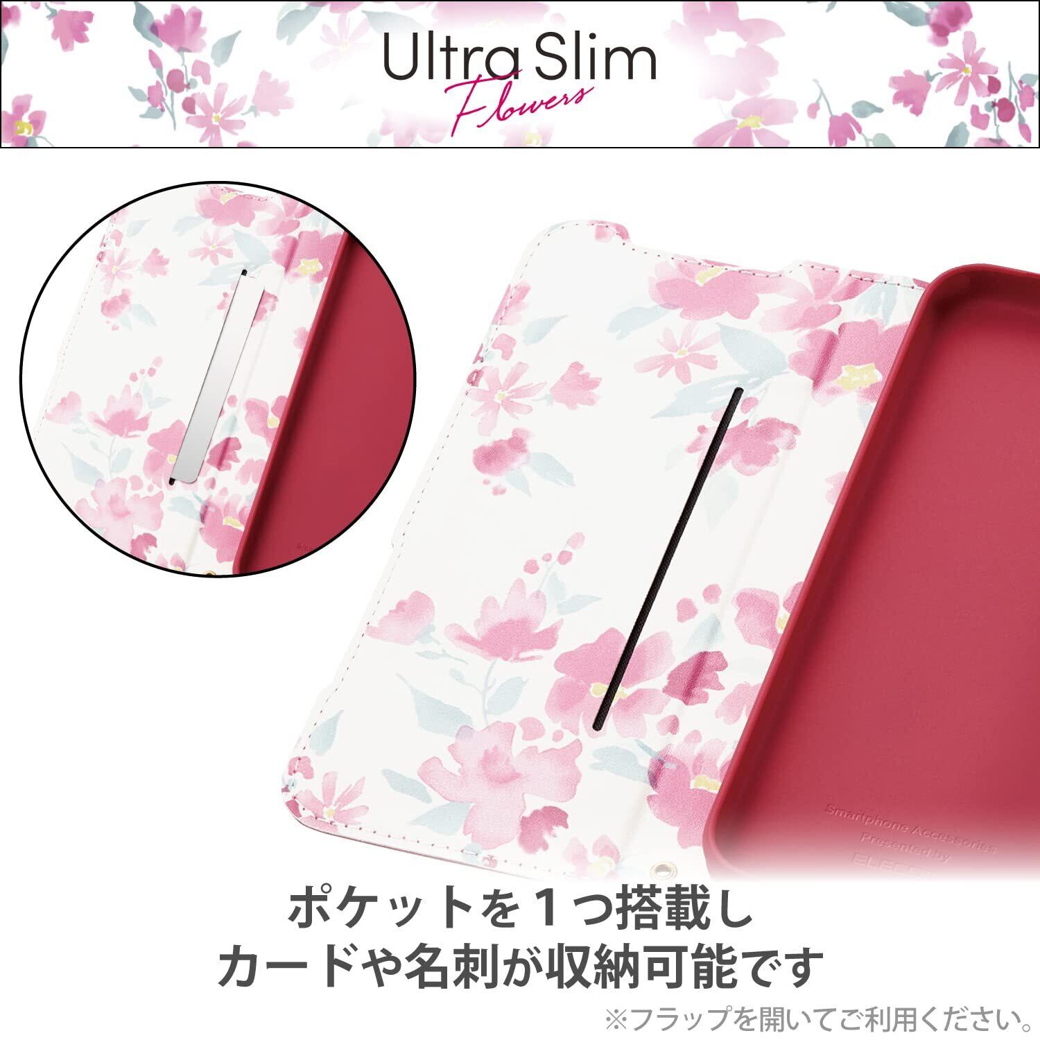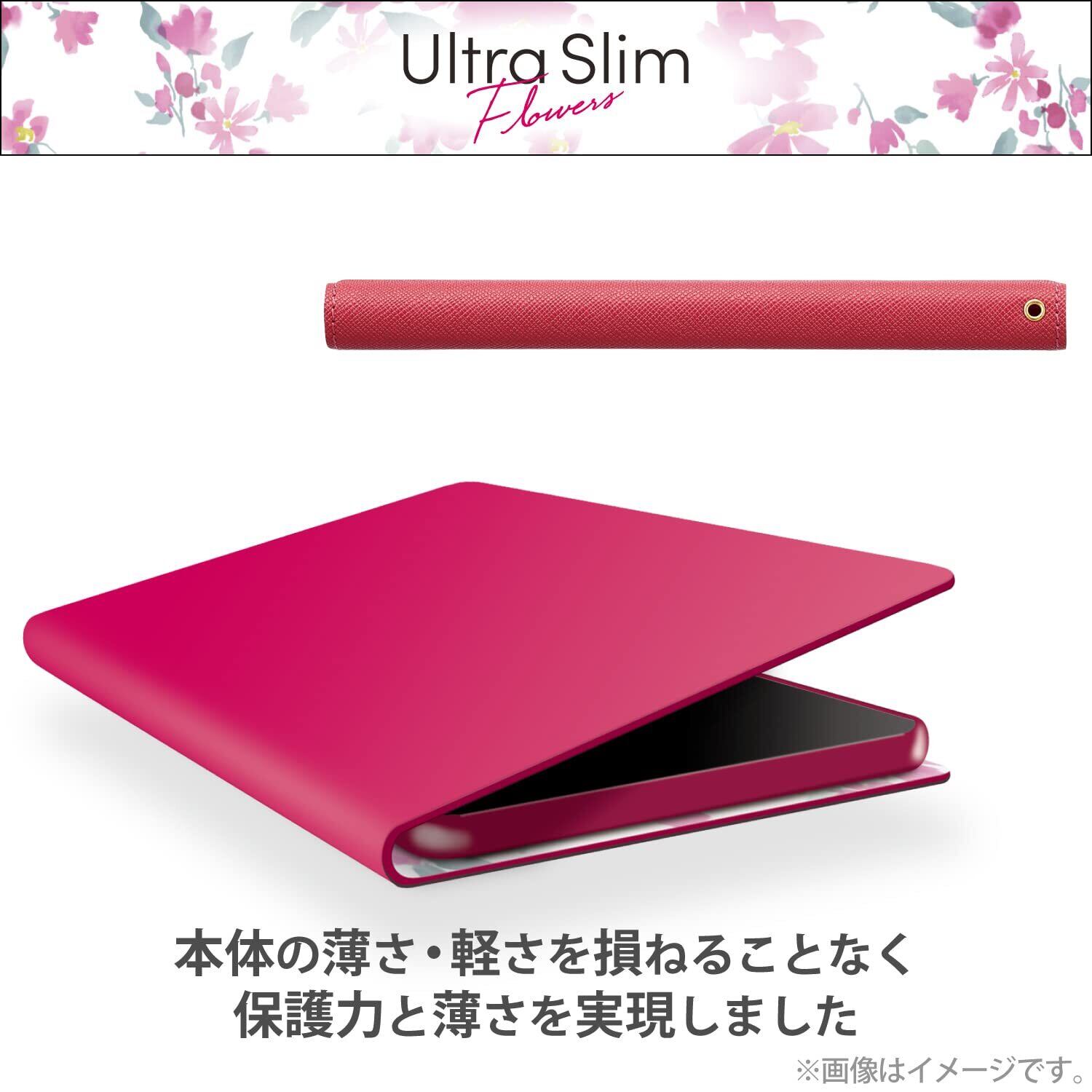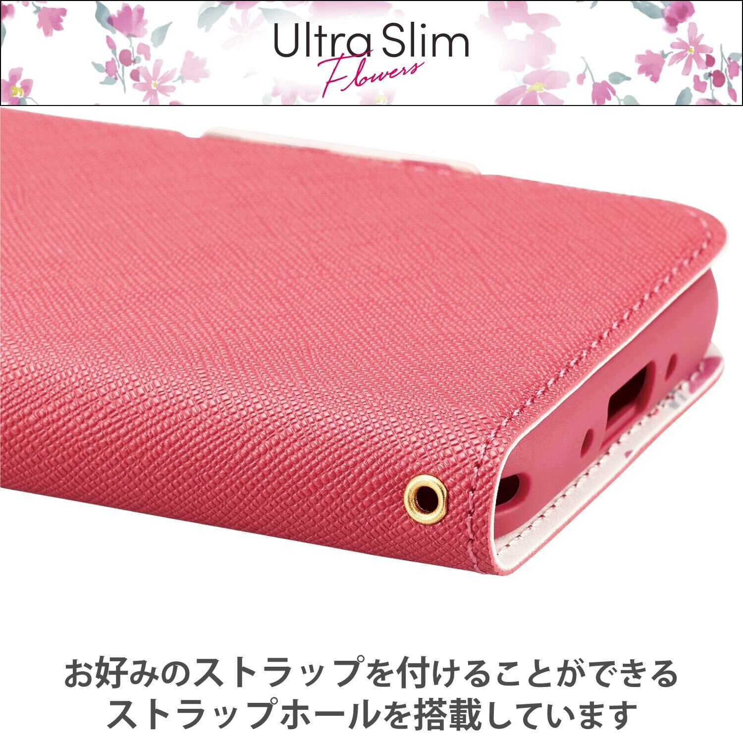 エレコム かんたんスマホ3 ケース カバー 手帳型 革 レザー 薄型 花柄(ケース内側) マグネットフラップ ストラップホール付き ピンク PM-K222PLFUJPND