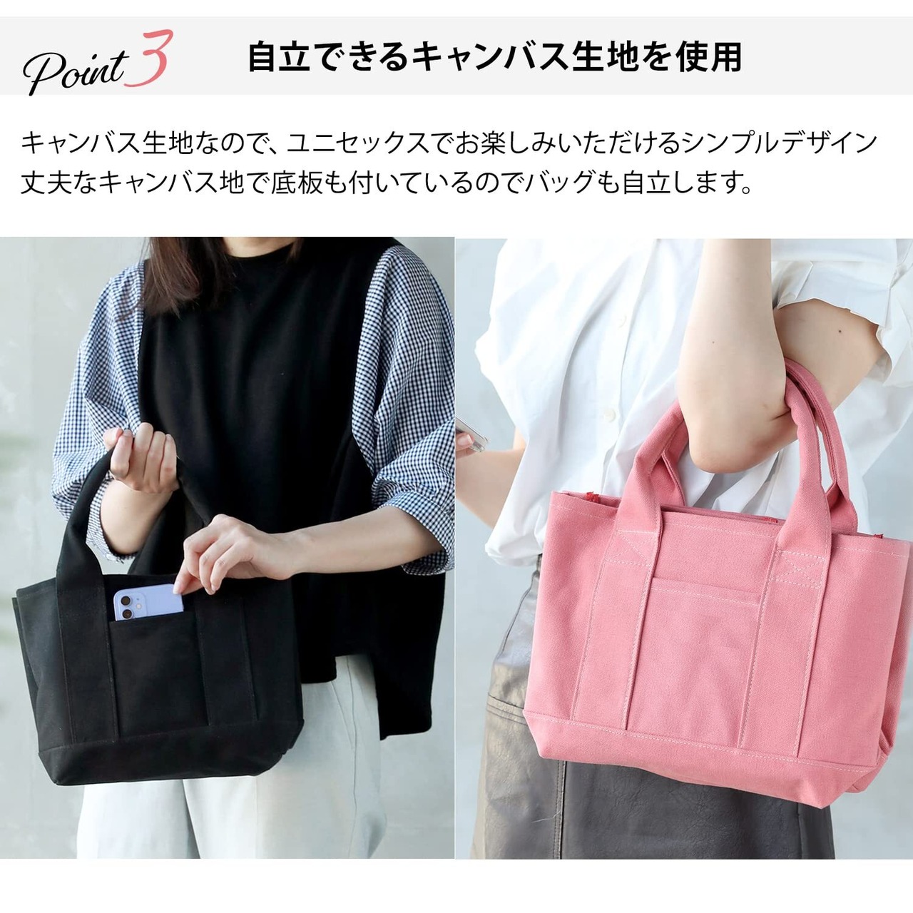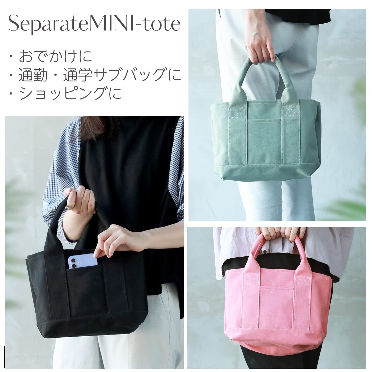 【様々なシーンで使えるミニトート】カジュアルなキャンバス素材なので、通勤 通学 用のサブバッグや、お出かけやランチバッグ等様々なシーンでご使用できます。