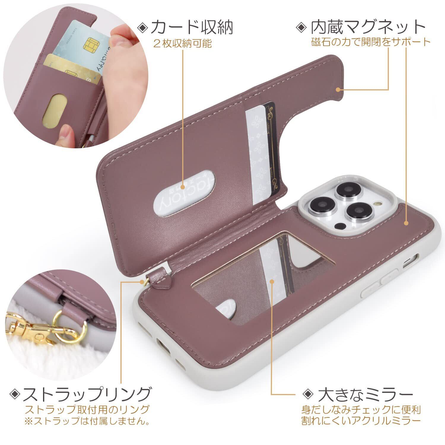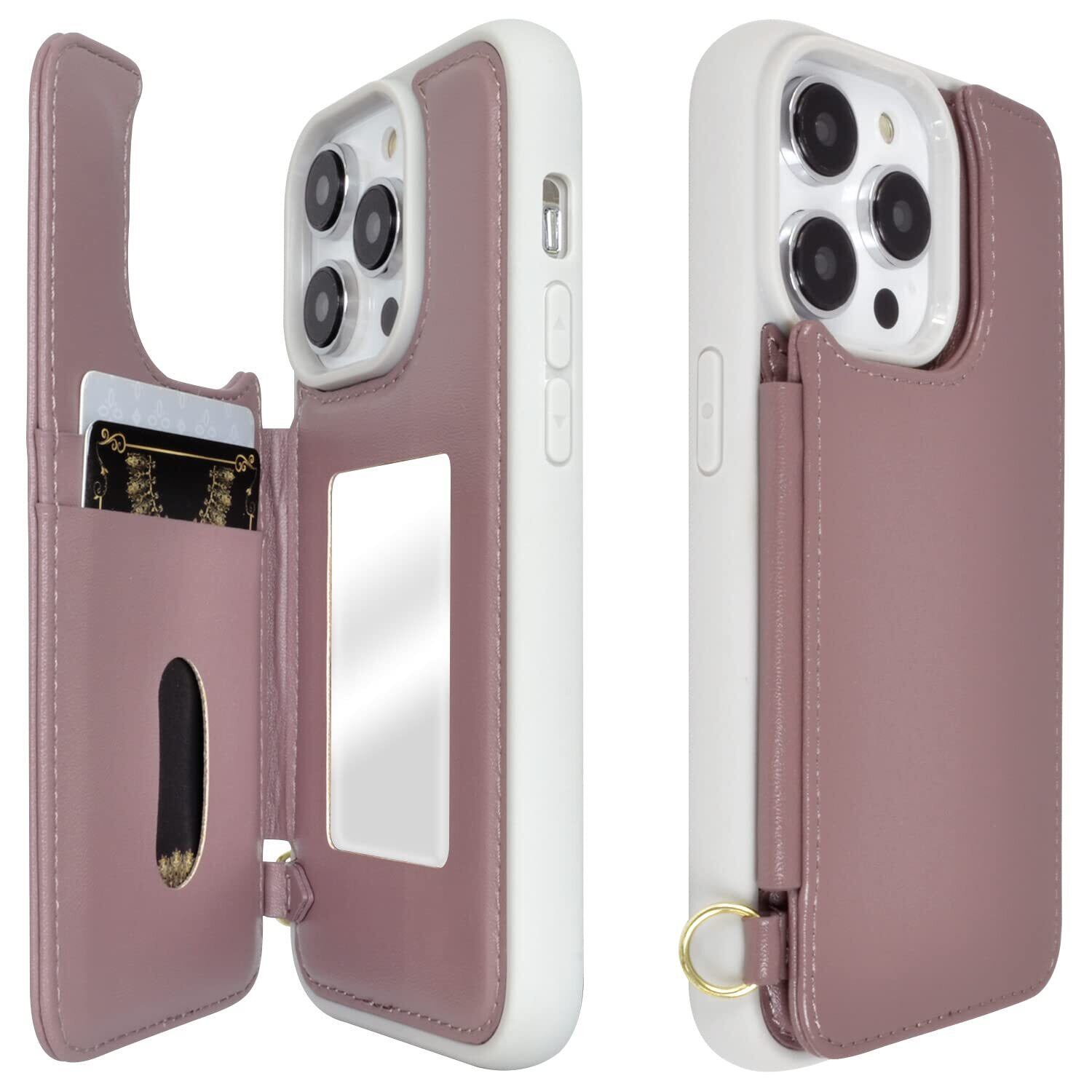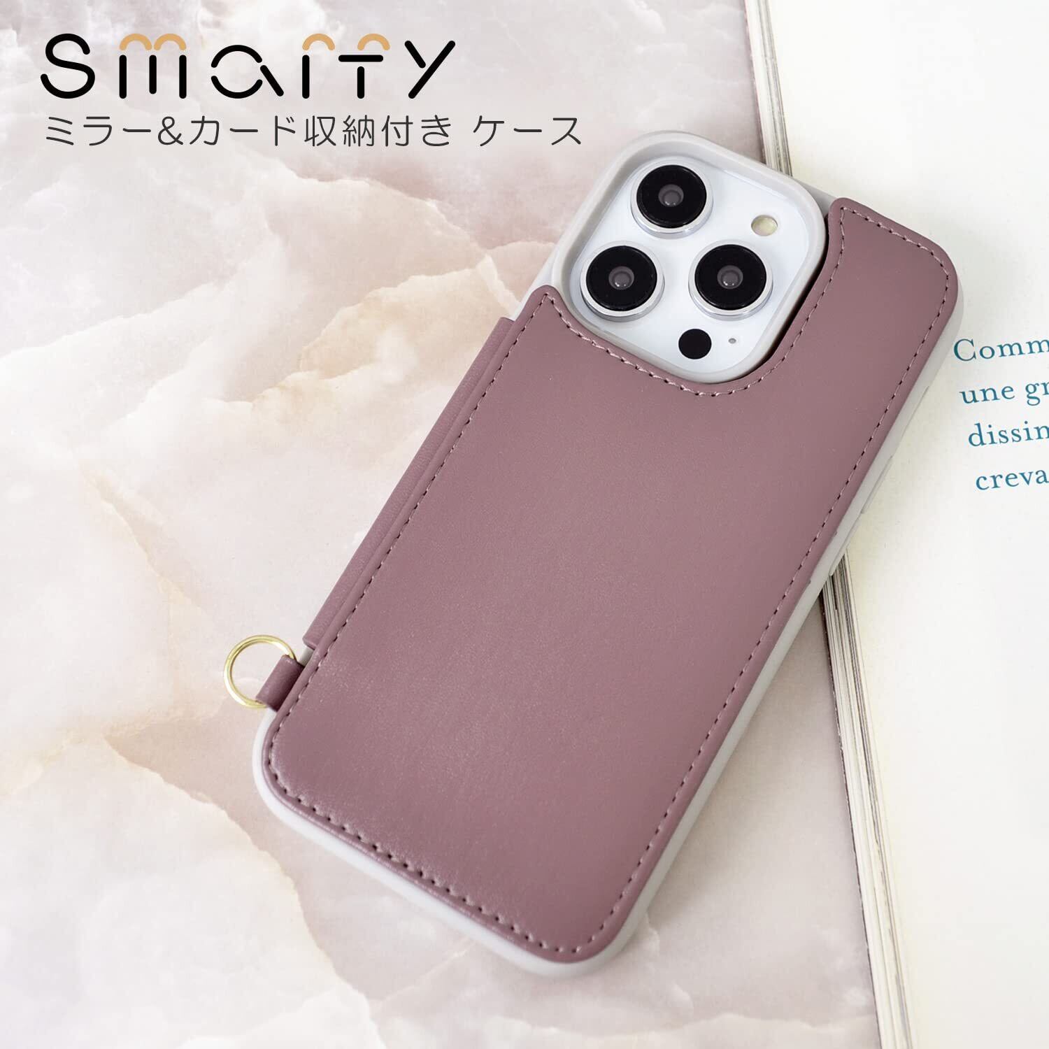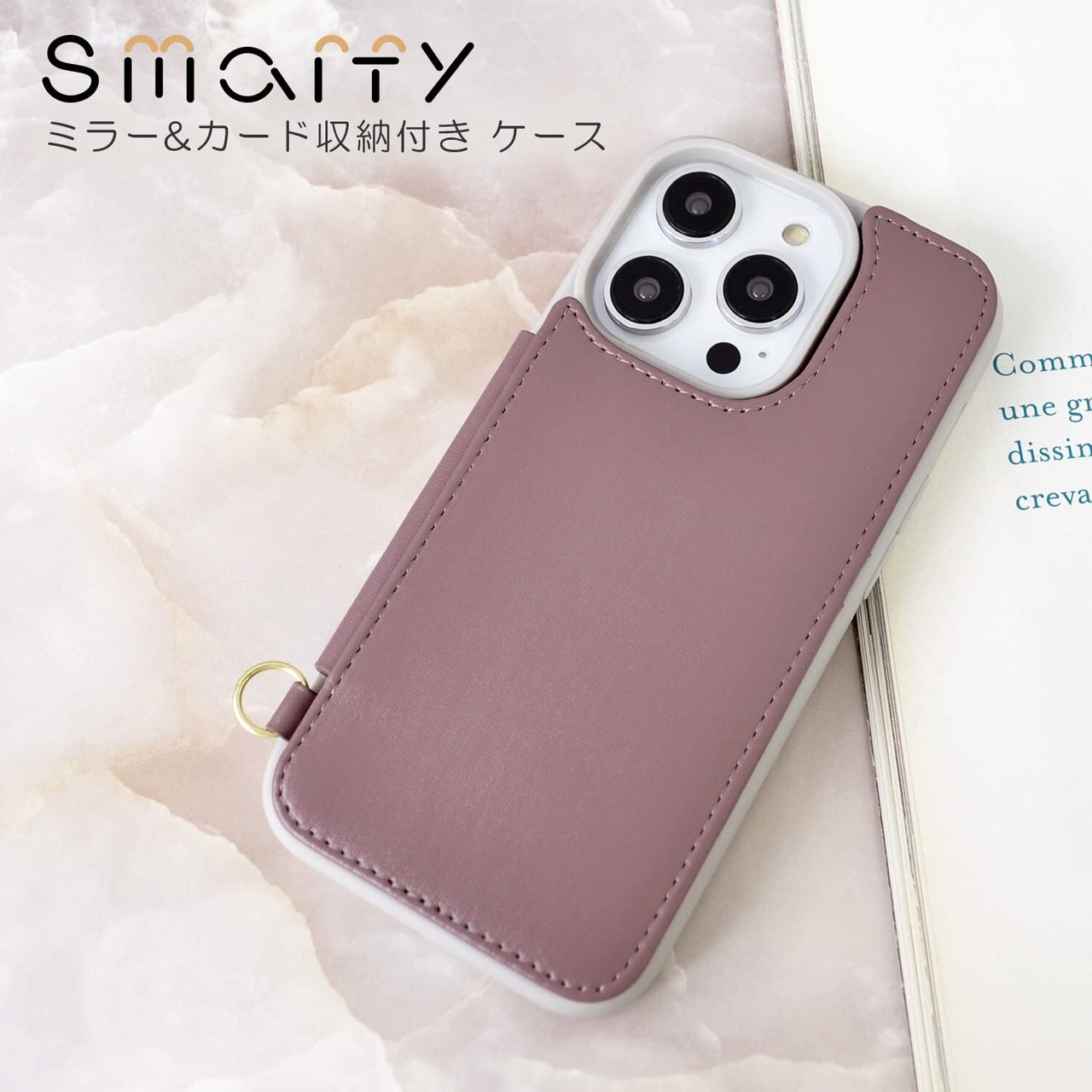 Smarfy iPhone14 Pro ケース 背面「 ミラー & カード収納付き 背面ケース 」アイフォン14プロ カード入れ 鏡付き スマホケース (ディープトープ)