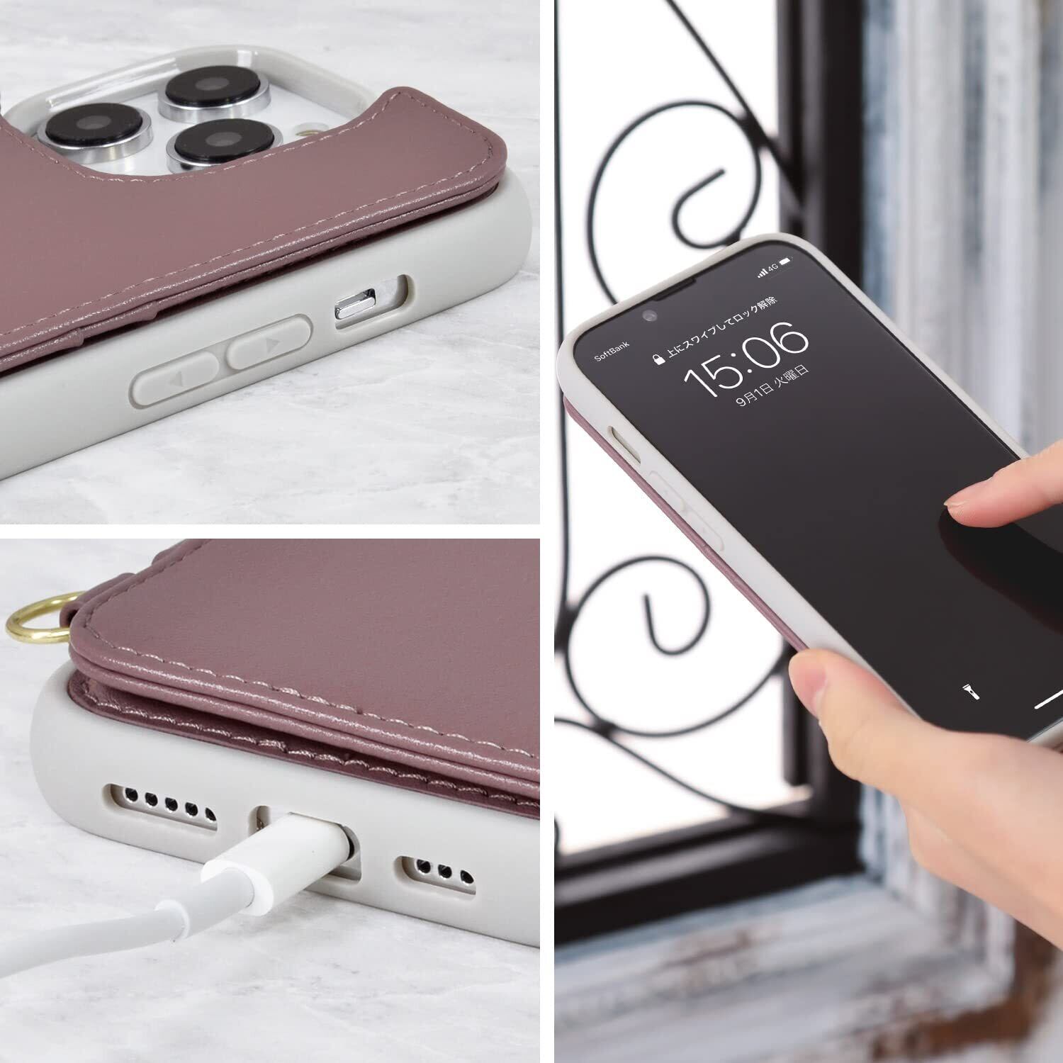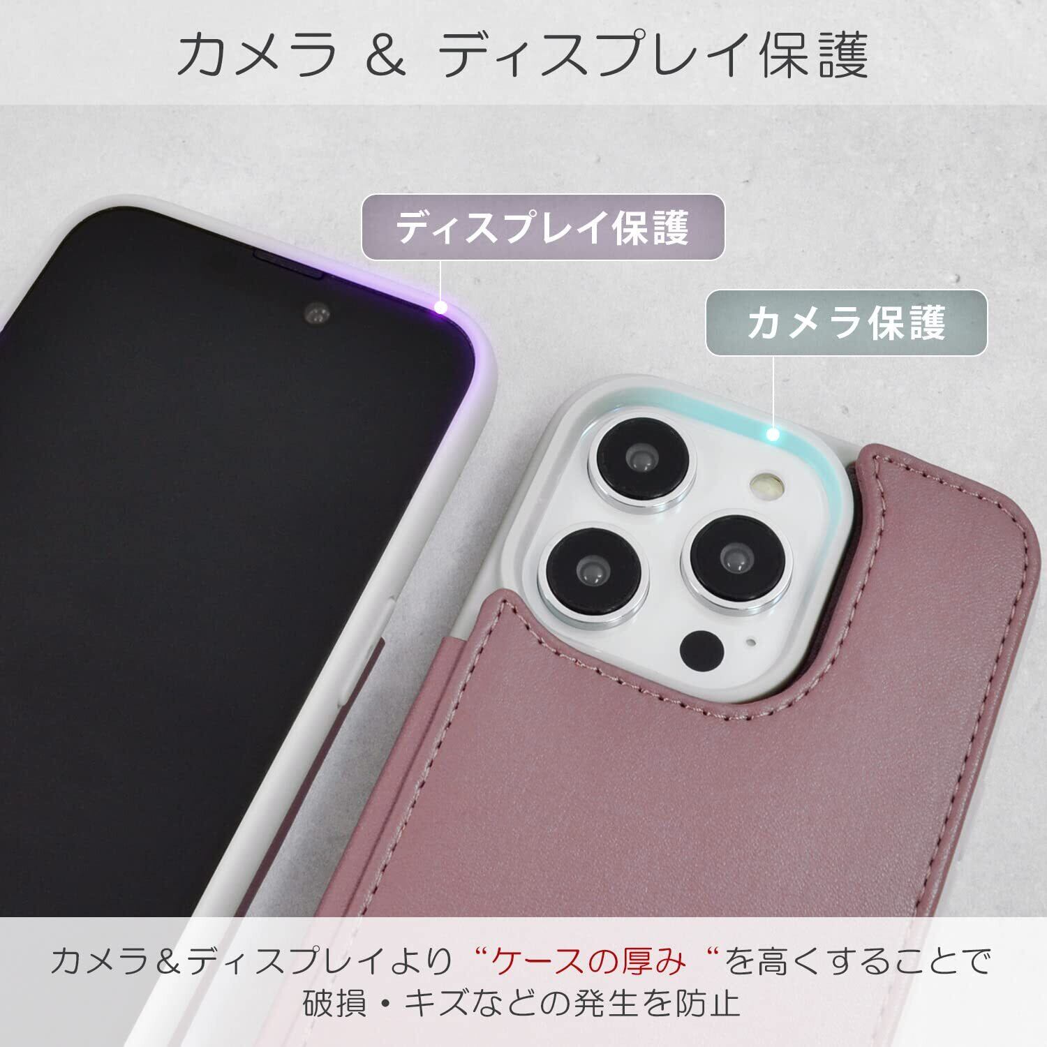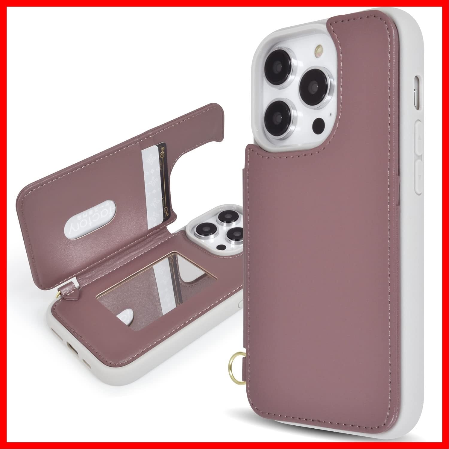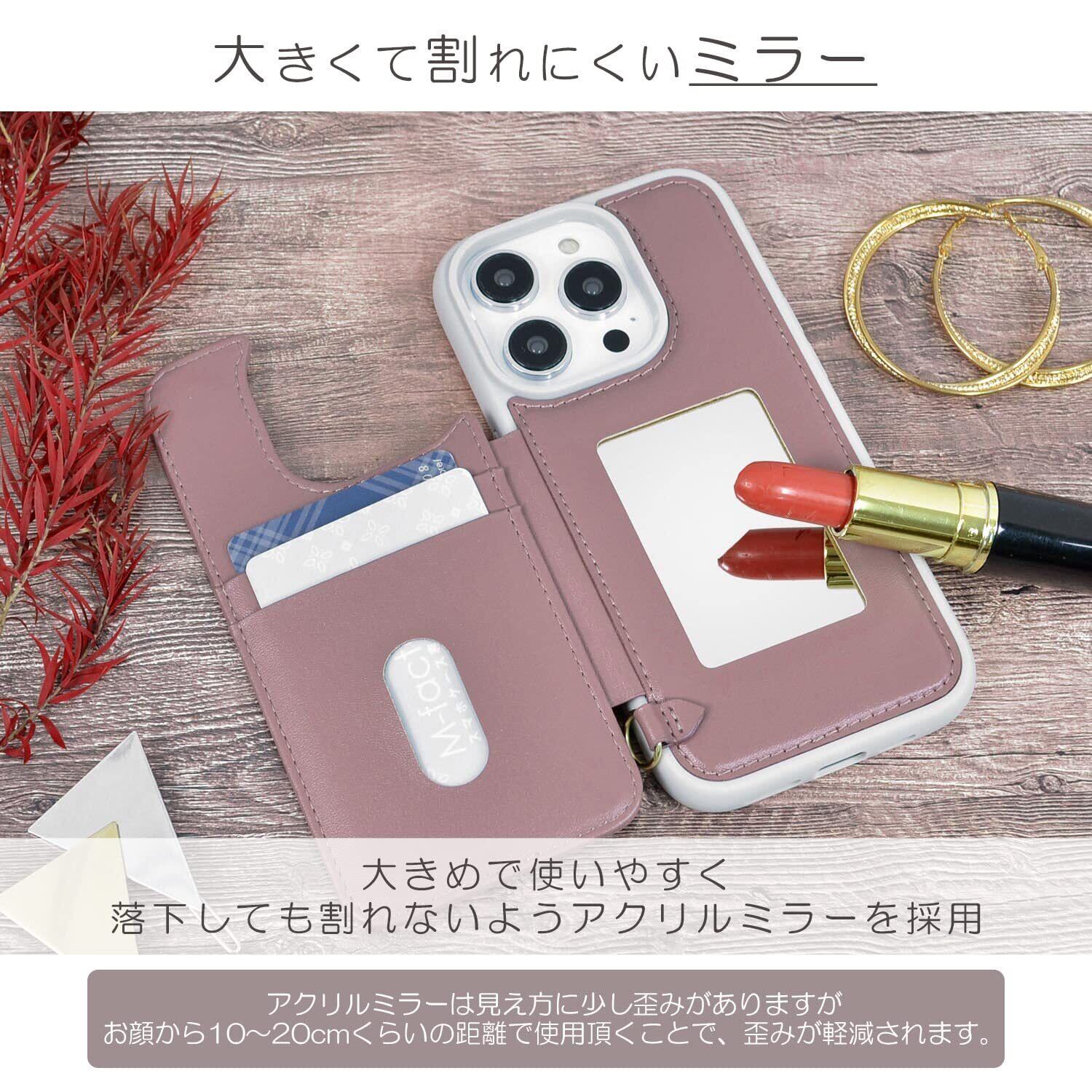 Smarfy iPhone14 Pro ケース 背面「 ミラー & カード収納付き 背面ケース 」アイフォン14プロ カード入れ 鏡付き スマホケース (ディープトープ)