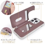 【特徴】 ・開閉サポート付き ・カード収納付き×2ケ ・大きなミラー付き・ケースはTPU素材