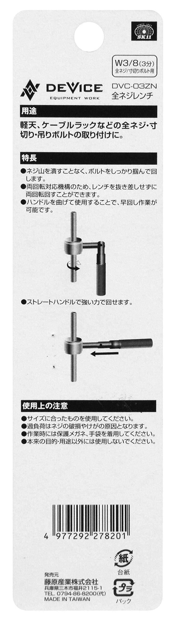 SK11(エスケー11) DEVICE 全ネジレンチ DVC-03ZN W3/8(3分) 全ネジ・寸切りボルト用
