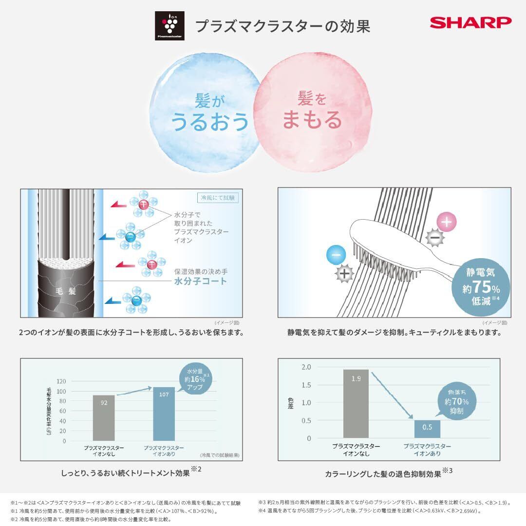 もっとラクに、時短ヘアドライ。【さらに進化】速く乾いて髪まとまる、ドレープフロー:髪を速く乾かすために、サロンでは片手に2台のドライヤーを持ってヘアドライするテクニックがあります。これにヒントを得て開発したドレープフローは、2つの吹出口から出る風が、髪を立体的に押し分けてヘアドライ。深く広範囲に風が届くことで、より進化した速乾性を実現しました。(効果は使用条件や個人差等により異なります。)速乾をサポートする、ヘアドライしやすい新デザイン:ノズルが短いデザインだから、コンパクトな腕の動きで髪全体をヘアドライできます。また握りやすいハンドル、片手で切り替えやすいボタンやスイッチ、上下左右に振りやすいバランス設計など、操作やヘアドライをスムーズに行える、使いやすい設計です。多彩なモードで髪も地肌もケア:熱ダメージを軽減してケアドライ、髪思いの【SENSING】(センシングドライ)モード:髪に与える熱ダメージや過乾燥を抑えるために、ドライヤーが髪との距離をセンシング。距離に合わせて風の温度をコントロールします。【SENSING】モードでヘアカラーも長持ち:ヘアカラーした髪は、熱風が苦手。髪にあたる風がずっとやさしい温度のセンシングドライモードなら、キューティクルをまもるプラズマクラスターとの合わせ技でお気に入りのヘアカラーがさらに長持ちします。小さなお子様の髪もやさしく乾かす【GENTLE】(ジェントル)モード:SET(風量小)よりも風量を抑え、風の温度を低めに。さらにドライヤーと髪が近づきすぎると冷風に切り替わる安心設計。大きな送風音に敏感なお子様に配慮した、やさしくヘアドライできる新しいモードです。スタイリングの仕上げにもおすすめです。【BEAUTY】モードでツヤ仕上げ、もっと輝く髪へ:キューティクルの引き締めには、温風と冷風を交互に髪にあてることが効果的です。その温風と冷風の切り替えを自動でできる、ビューティモードを搭載。ドライヤーによる過乾燥も抑えて、ツヤのある髪に仕上げます。BEAUTY】モードは、季節に合った最適な温度帯に自動切替:周辺温度をセンサーで感知し、4つの温度帯[HOT(高)/HOT(中)/SCALP/COLD]の中から熱すぎず、寒すぎない風の組合せを自動で設定します。髪と地肌を思いやる、その他多彩なモード:温度帯が違う多彩なモードを切り替えて髪を乾かせば、髪と頭皮をいたわりながら美しく仕上げることができます。【HOT】=スピーディドライモード:髪の根元を持ち上げながら、温風を根元にあてると、髪をボリュームアップさせながら乾かすことができます。【SCALP】=地肌ドライモード:約50℃の温風で、地肌をいたわりながらじっくり乾かすことができます(ある程度髪が乾いてからの使用をおすすめします)。【COLD】=冷風モード:温風をあてた後の仕上げに冷風をあてると、髪にうるおいが保持※4され、まとまりやすくなります。美髪アプリで風をカスタマイズ:アプリとの連携でドライモードをカスタマイズできる、APPモード:好きな[温度帯]×[時間]の組合せで、自分好みの心地よいドライモードにカスタマイズできる美髪アプリ[ボーテアップ(beautéApp)]に対応しています。温度切替ヘアドライ:しっとり感を出すなら、低温ドライがおすすめ。高温と低温を切り替えることで、低温一定送風よりもドライ時間を短縮しながら、うるおい感のある仕上がりに。あなた好みの仕上がりへと導く機能、[コンシェルメニュー]も:自分の髪の長さ(ロング、ボブ/セミロング、ショートヘア)と、どんな仕上がりになりたいか(すっきり、しっとり、さらさら、ぽかぽか)を選ぶと、それに合ったおすすめの送風モード「マイループ」を自動的にご提案。その日の気分に合った風を、迷うことなく設定できます。このコンシェルメニューを使った「マイループ」から、風の温度帯や吹き出す時間をお好みで調節することもできます。5つのドライモードの順番を、使いやすくカスタマイズ(IB-WX3/WX2対応):通常は、MODEボタンを押すたびに[HOT]→[SENSING]→[BEAUTY]→[SCALP]→[APP]*の順番でドライモードが切り替わりますが、この順番を自分好みに変えたり、使わないモードはスキップしたりと、自由にカスタマイズして登録できます。よく使うモードに切り替わるまで何度もボタンを押す手間も少なくなり、運転操作がよりスムーズに。もちろん、登録内容をリセットして初期の運転モードに戻すこともできます。*[APP]モード設定時。うるおう&まもる、プラズマクラスター。プラスイオンとマイナスイオンで、髪がうるおう理由:水分子に包まれているプラスとマイナス、2つのイオンが髪の表面に水分子コートを形成し、うるおいを保ちます。しっとり、うるおい続く(トリートメント効果※2)プラズマクラスターによる水分子コートで、手ざわりのいい、しっとりしなやかな髪に。その効果が朝から夕方まで、約8時間続きます。キューティクルを引き締める※4:髪1本1本の表面にある、ウロコのような形をしたキューテ