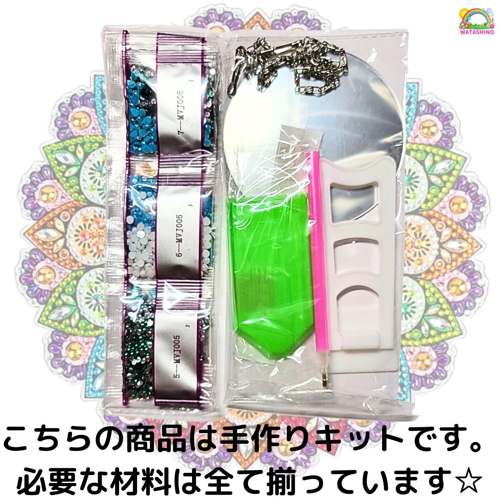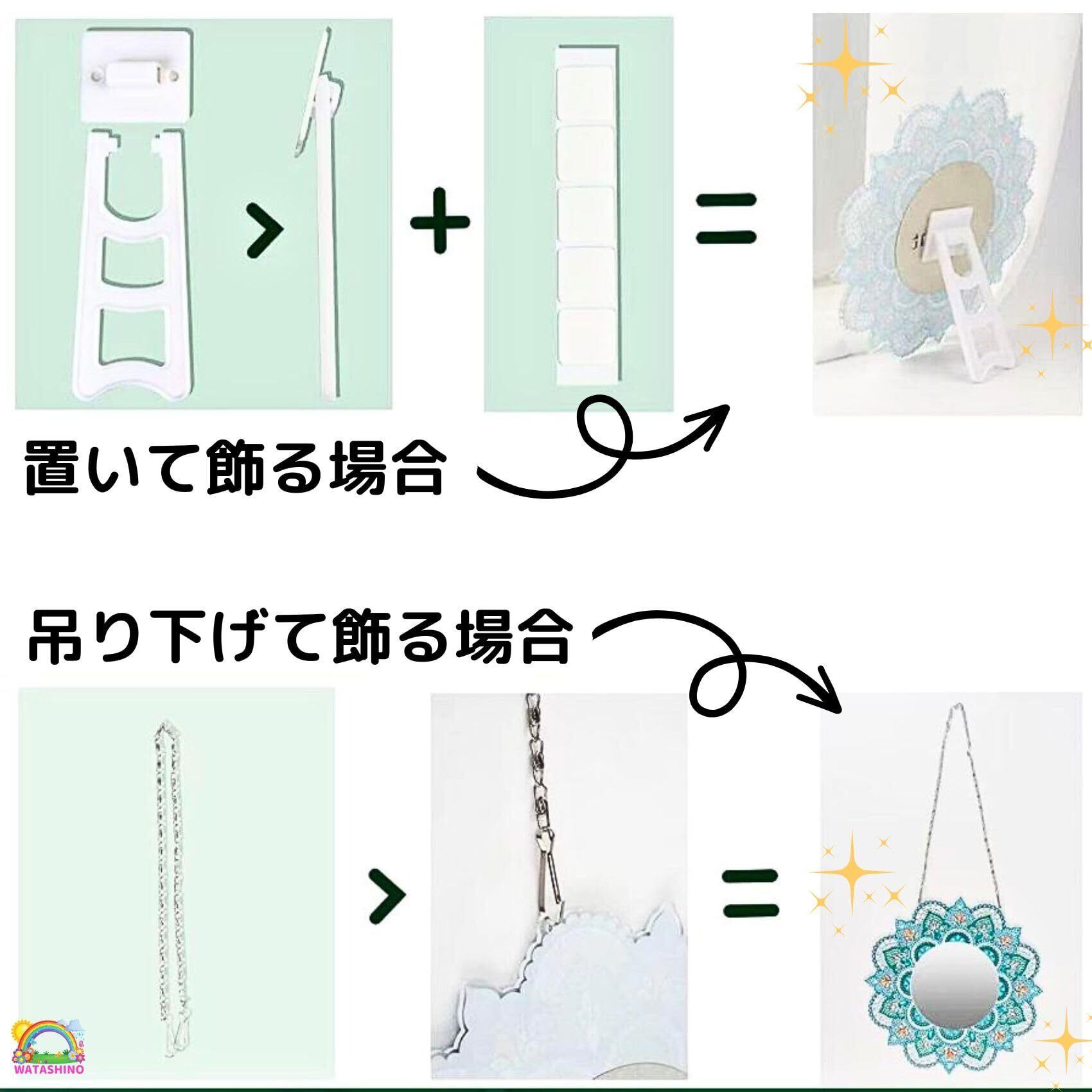 このダイヤモンドアートは、キラキラ輝く美しいダイヤモンドビーズで、曼荼羅(マンダラ)模様の化粧鏡を作ることができる手作りキットセットです。完成後は壁掛けミラー、卓上ミラーとして活用できます。