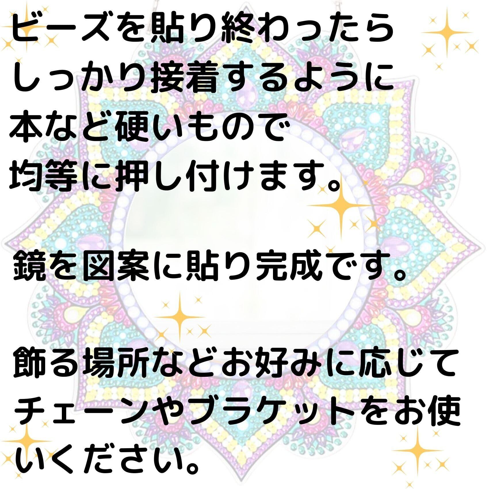 サイズ 直径約20cm、セット内容 鏡、アクリル板図案、ビーズ、ペン、トレイ、ピンクのり、チェーン、両面シール、スタンド。製造国 中国。パッケージデザインは2種類ございます。