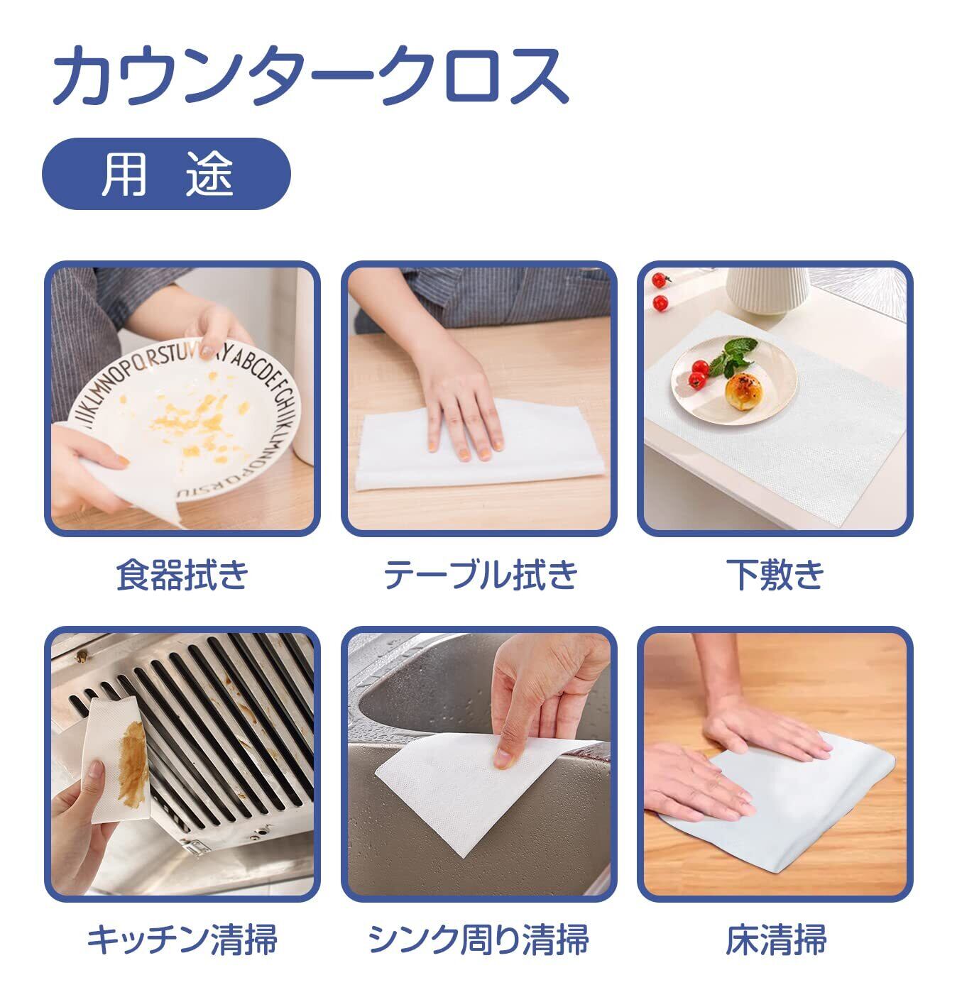 食器拭き、カウンターやテーブルのふきん、食品加工時の水分と油分の吸収、調理時のふきん、窓やショーケースなどの拭き掃除。