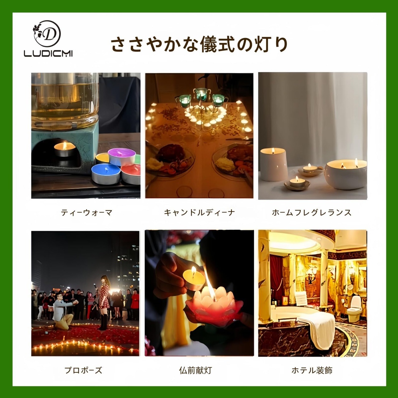 LUDICMI ティーライトキャンドル 100個入り アルミカップ付き 茶香炉用ロウソク 4~5時間燃焼 キャンドル 無香料 ディプティックキャンドル ロウソクランタン 芯付きティーウォーマーキャンドル イベント用