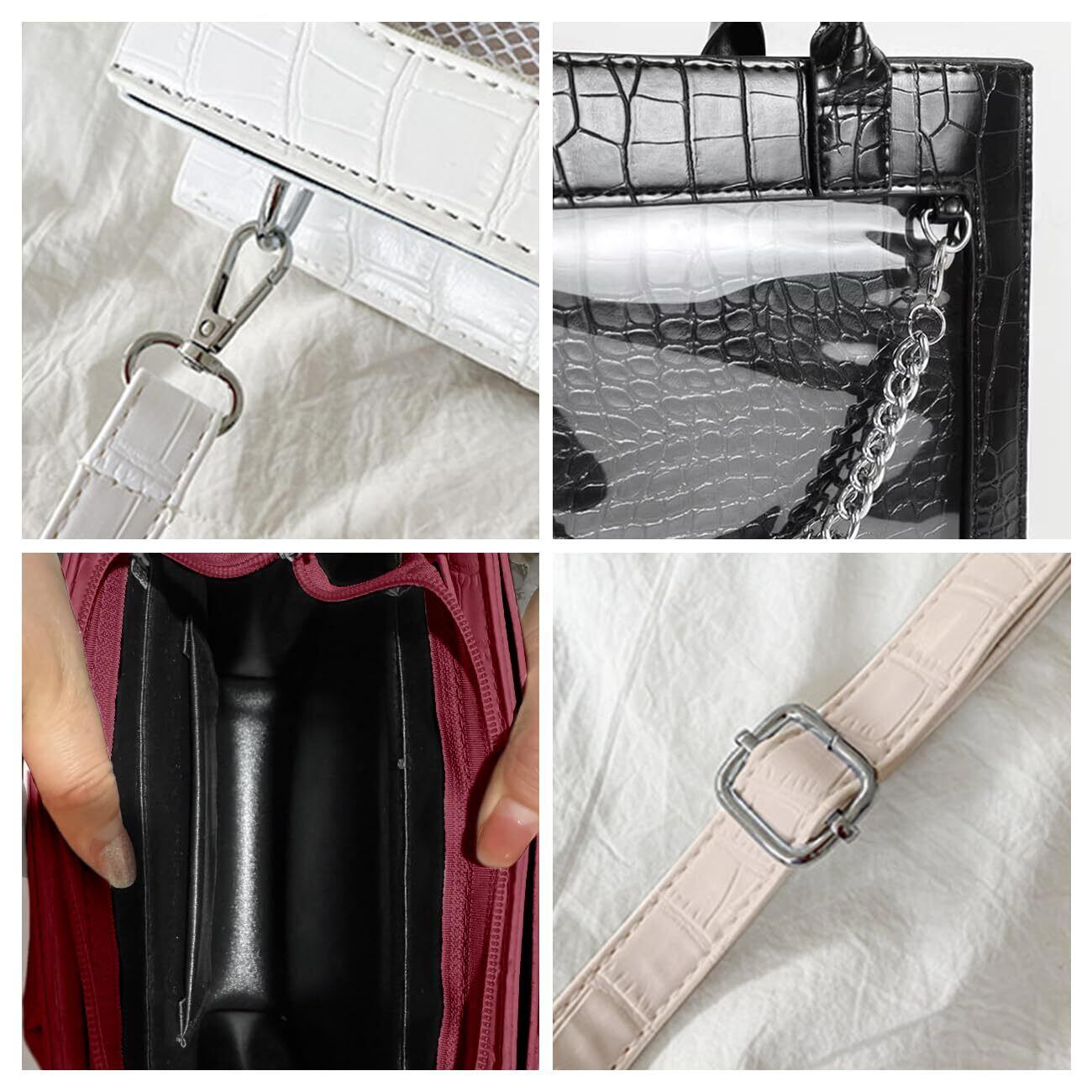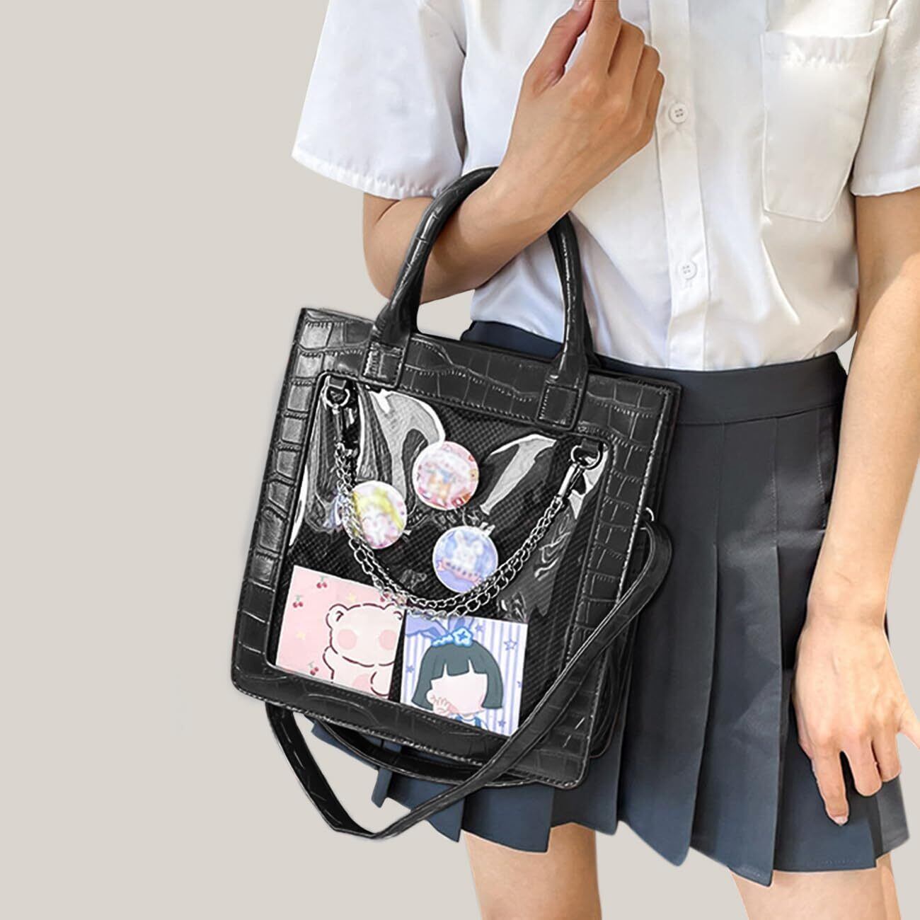 [YUYAKESHI] 痛バッグ 痛バ ショルダー 見せバッグ クリアバッグ PU 透明窓 カバン 缶バッジ入れ クロコダイル柄 オタク 2way 痛マット付