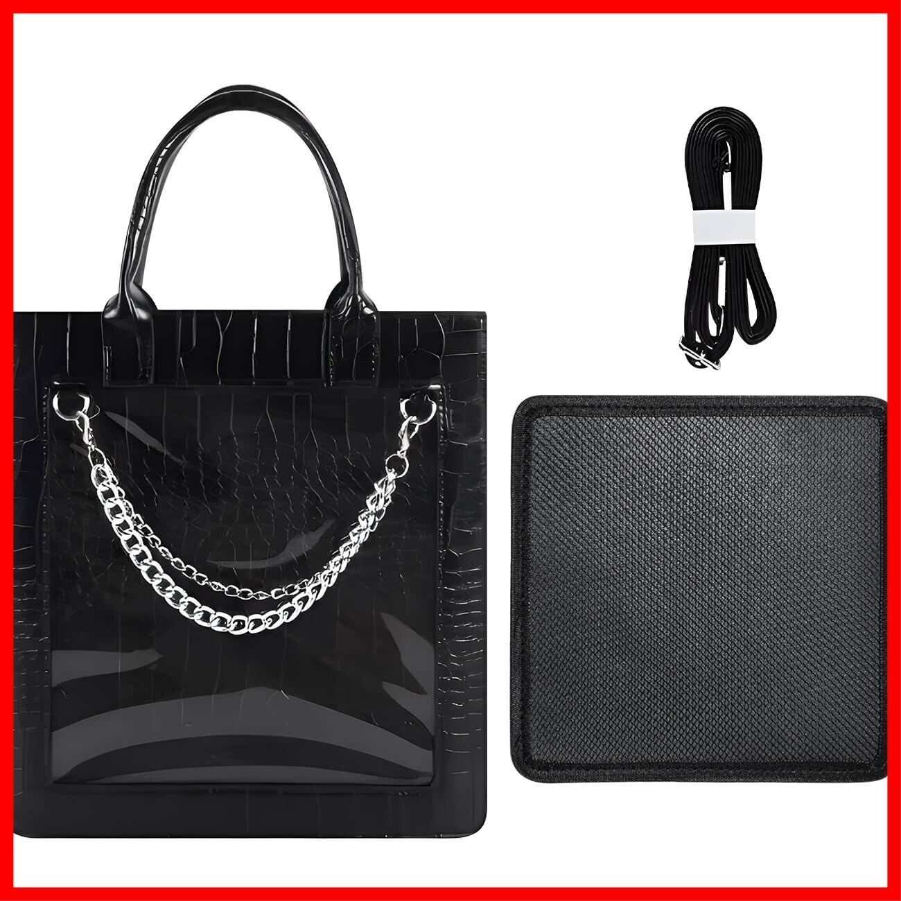【仕様】製品名前:痛マット付2WAY痛バッグ。素材:クロコダイル柄PU、PVC、ナイロン、金属。サイズ:全体:幅25cm、高さ26.5cm、厚さ8cm。重さ:0.75kg。付属品:痛マット、透明窓外部の飾りチェーン、ショルダーストラップ。カラー:ブラック。注意:本品はバッグ・痛マット・ショルダーストラップのみを含み、缶バッジやほかのアパレル部品に含まれません。