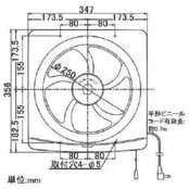●連動式シャッター(排気)<BR>●25cmプロペラファン<BR>●オール樹脂製<BR>●引き紐スイッチ付<BR>●電源コードプラグ付<BR>●油受け付