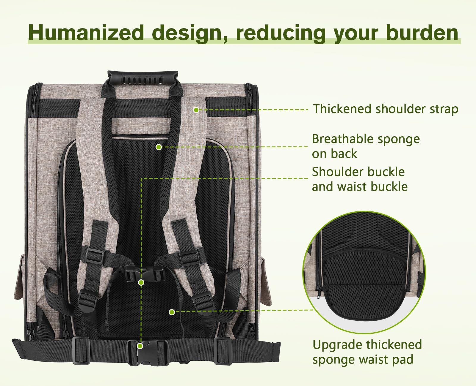 【安定して快適】:冬と夏のデュアルユース生地は、季節の制約を打ち破り、犬 リュックをすべての季節に使用できるようにします。 内蔵の柔らかいスポンジは快適性を高め、頑丈な木の板はより良い重量サポートを提供します。猫用キャリーには複数のジッパードアが付いており、ペットの出入りが簡単です。