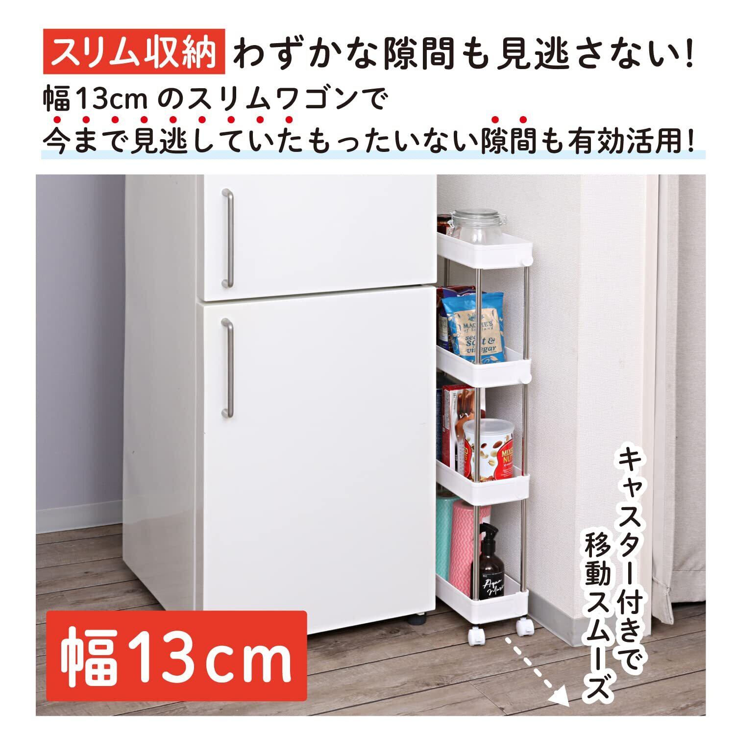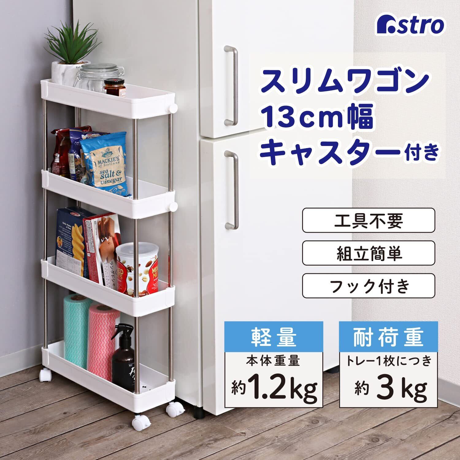 アストロ 【使い方動画あり】 キッチンワゴン ホワイト スリム 4段 キャスター付き 収納ワゴン キッチンラック 収納カート 調味料ラック 隙間収納 310-28