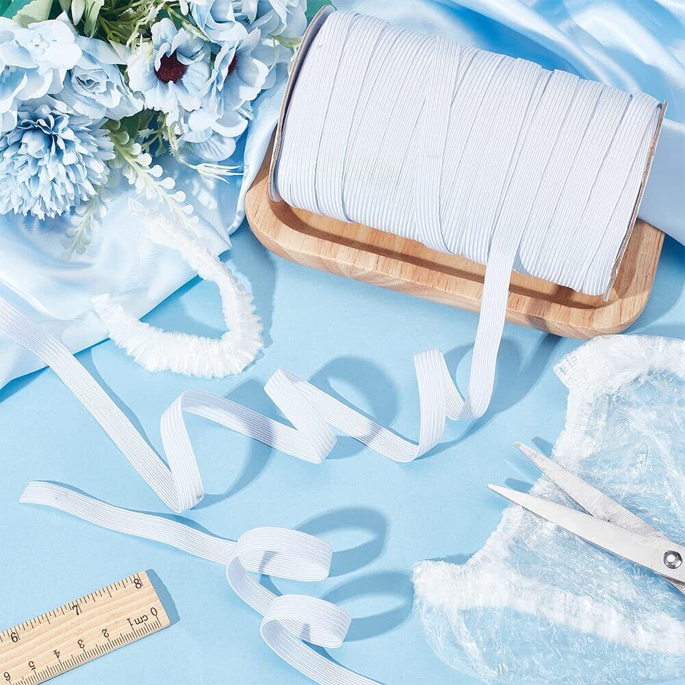 PH PandaHall 約100ヤード ゴム 幅10mm 織りゴム 洋裁ゴム ゴムベルト ポリエステル製 弾性バンド ゴムコード 編みタイプ 伸縮可能 ストレッチバンド 弾力コード 裁縫材料 手作り素材 手芸用品 ホワイト