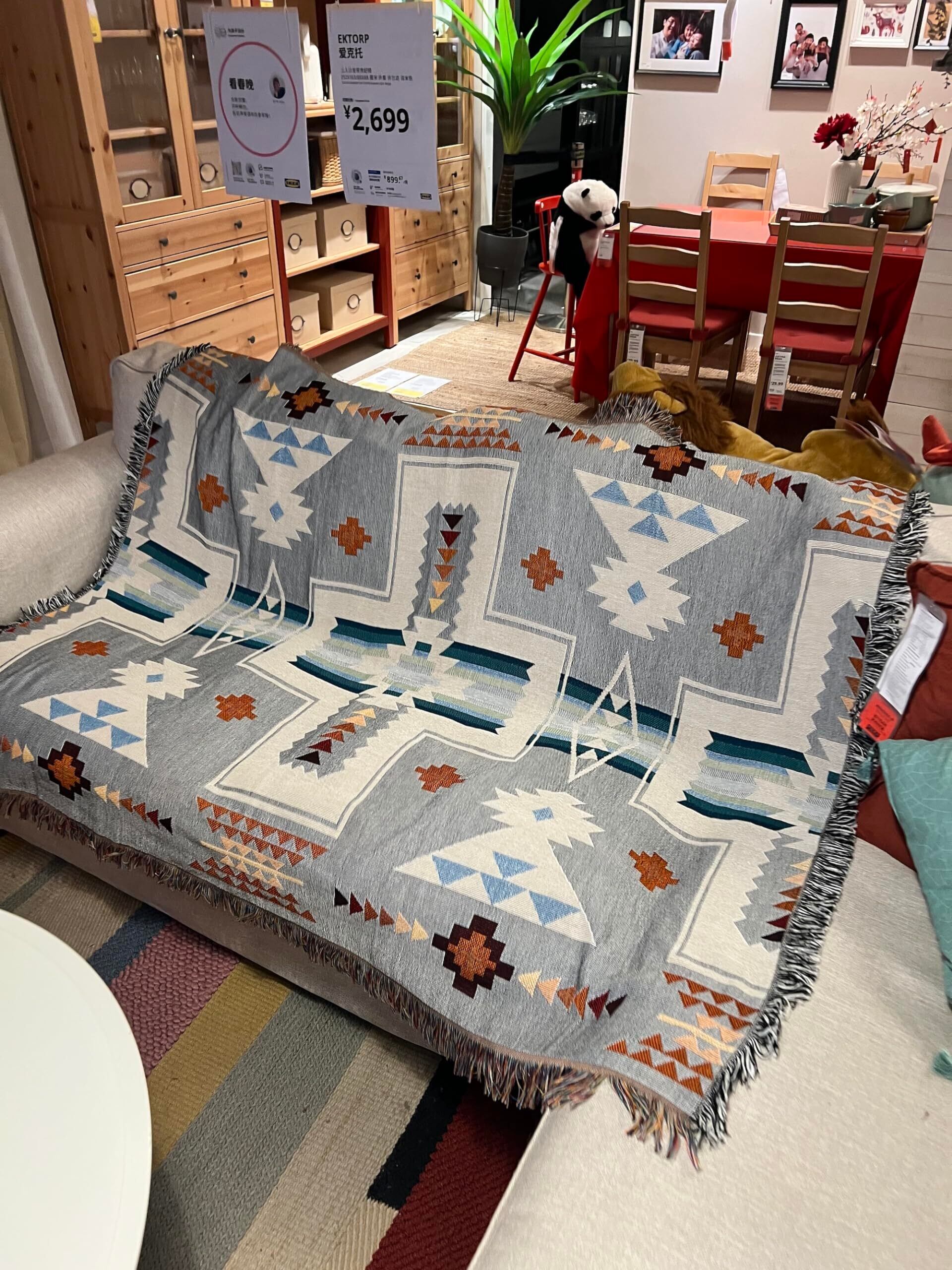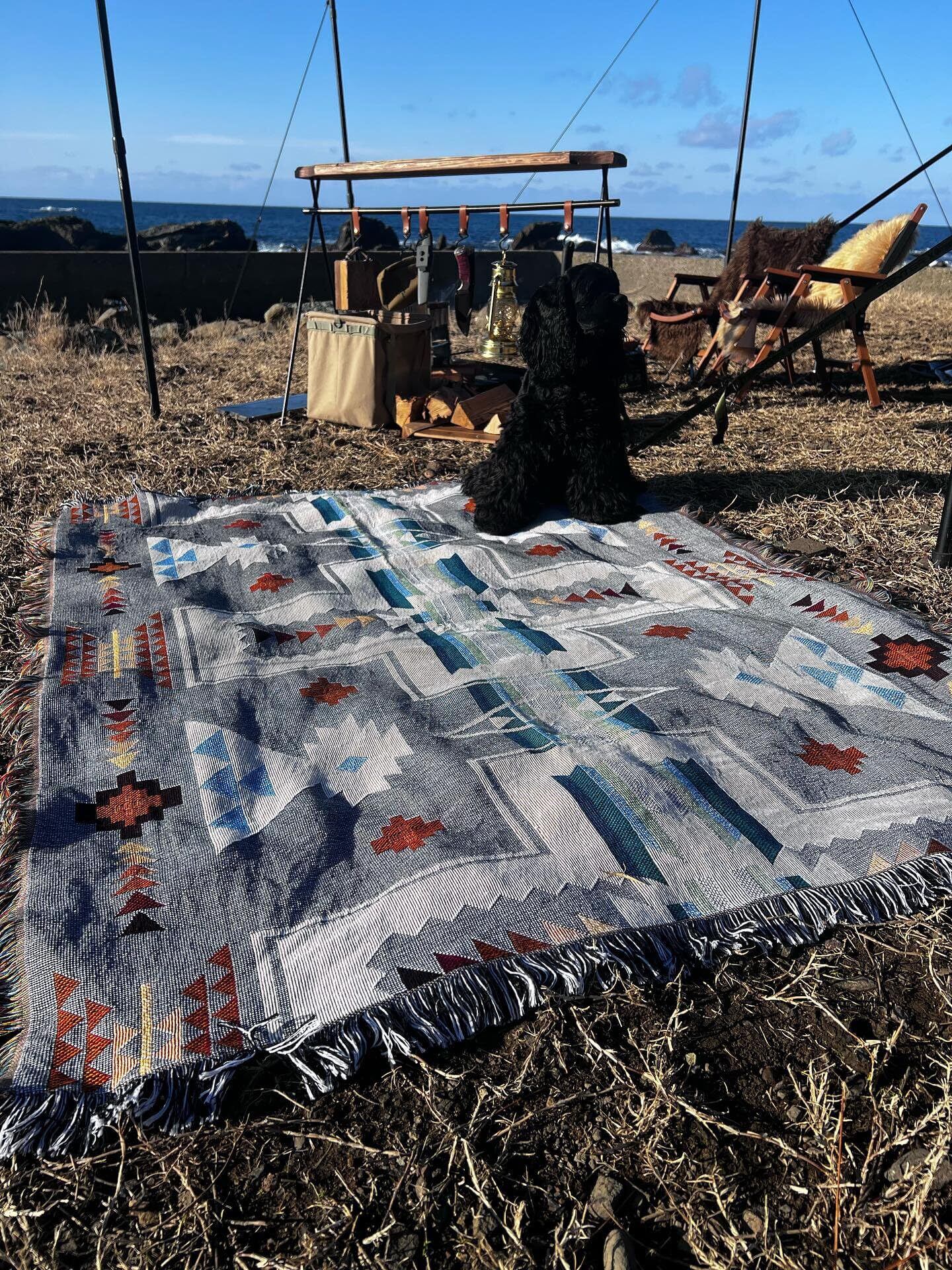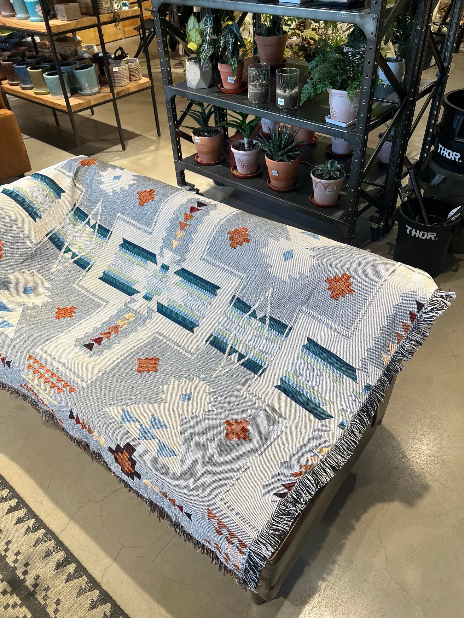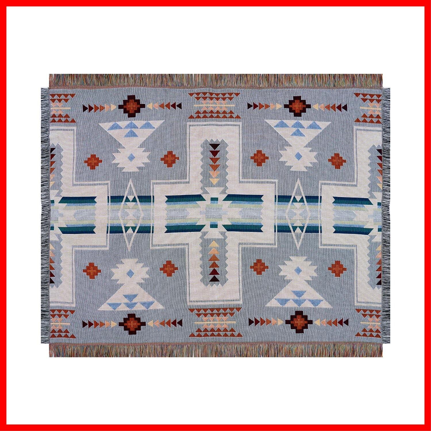 Peel Forest エルパソブランケット マルチカバーメキシカンラグ ネイティブ柄 オルテガ柄 キャンプラグ サドルブランケット アウトドア バンライフ ,グレー,130X160cm…… | hananoki
