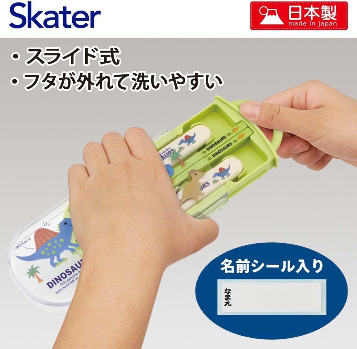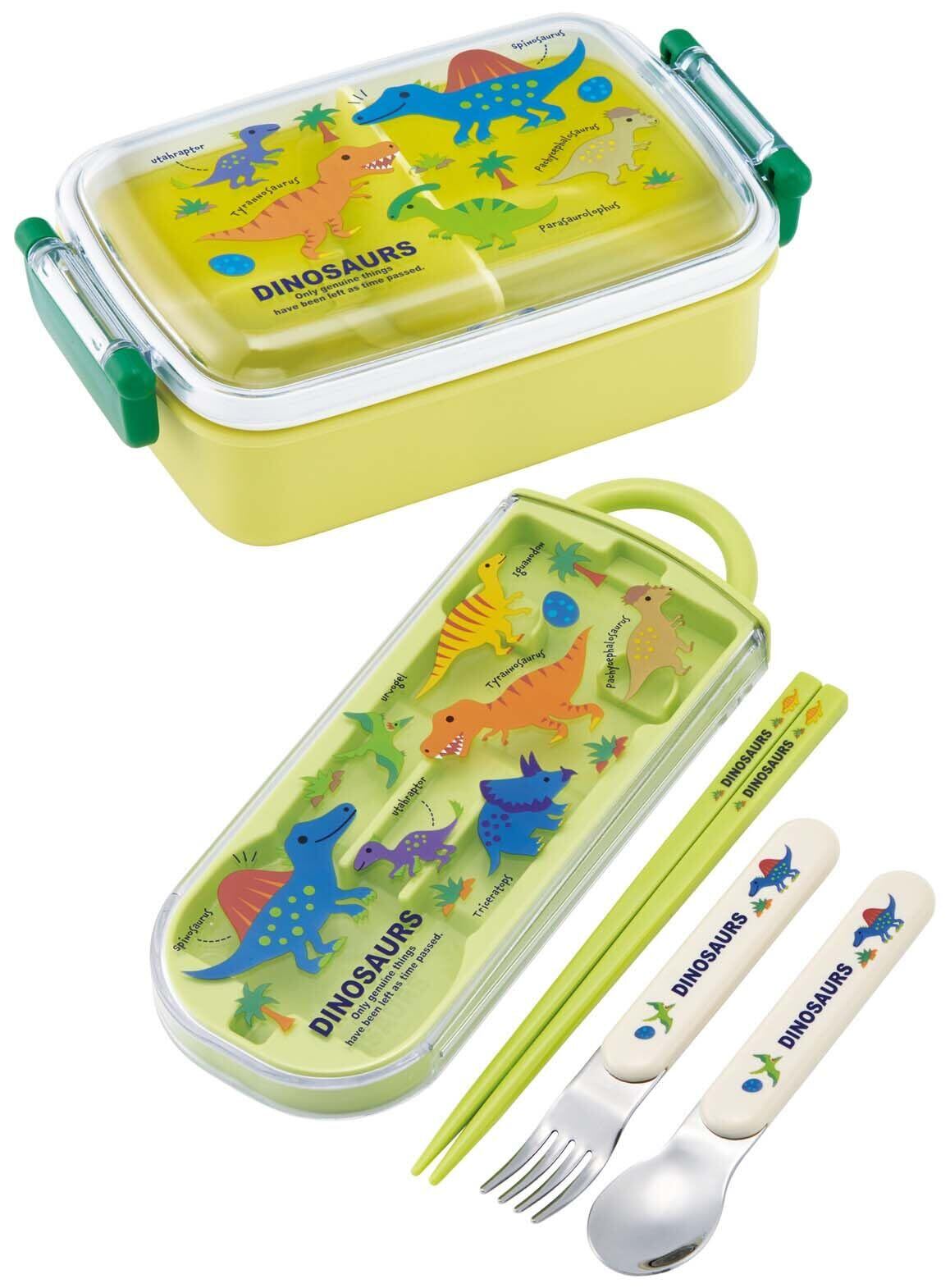 スケーター(Skater) お弁当 トリオセット 箸 スプーン フォーク ディノサウルス ピクチャー ブックNEW 子供用 抗菌加工 開けやすいスライド式 日本製 TACC2AG-A | hananoki