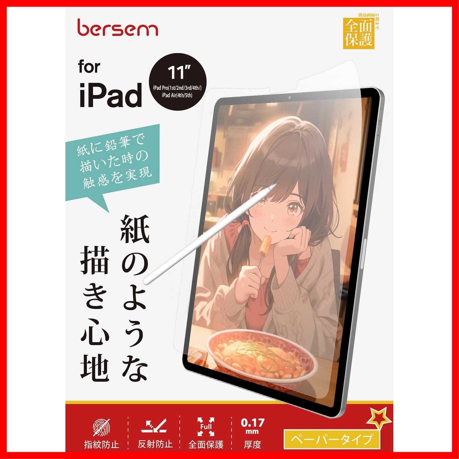 BERSEM【2枚セット】iPad Air 第5世代(2022)iPad Pro 11インチ(2022/2021/2020/2018年)iPad Air 第4世代(2020)用 ペーパーライクフィルム【紙のような描き心地】【反射防止アンチグレア】【指紋/気泡防止】【Apple Pencil対応】 | hananoki