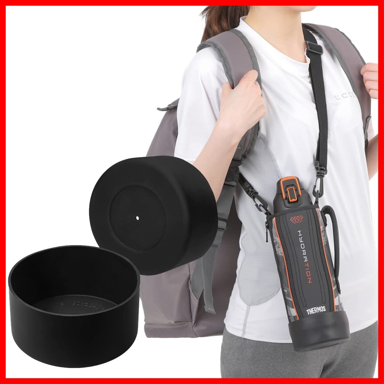 【幅広い互換性】ほとんどのサーモスや象印の水筒ポーチの底に合います。サイズ 0.35&0.5&0.6L:直径7.5cm高さ4.5cm、0.8L&1L:直径9cm高さ4.5cm、1.5L:直径10cm高さ4.5cm