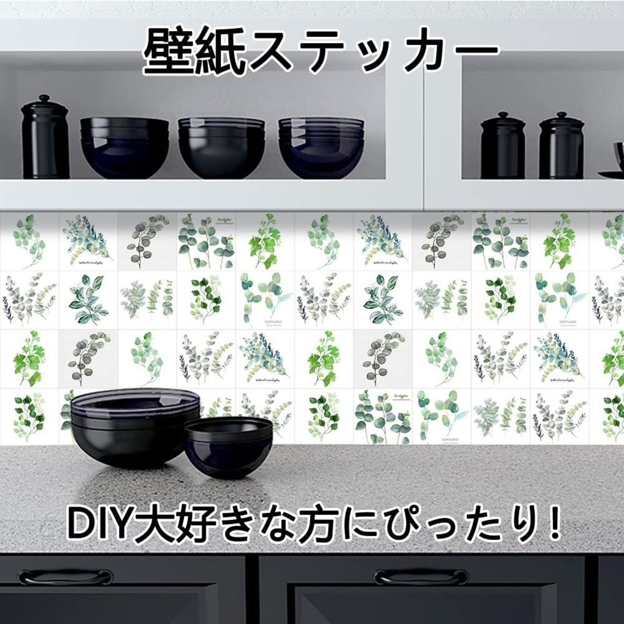 Hitasi モザイクタイルシール 壁紙シール 剥がせるリメイクシート 防水シール 20枚セット 可愛い 北欧 植物柄 緑の葉 PVC製 断熱 防水 防汚性にも優れ 自分粘着 DIY ウォールステッカー トイレ 洗面所 キッチン 模様替え タイル補修 賃貸でも安心 10cm*10cm 20枚セット | hananoki