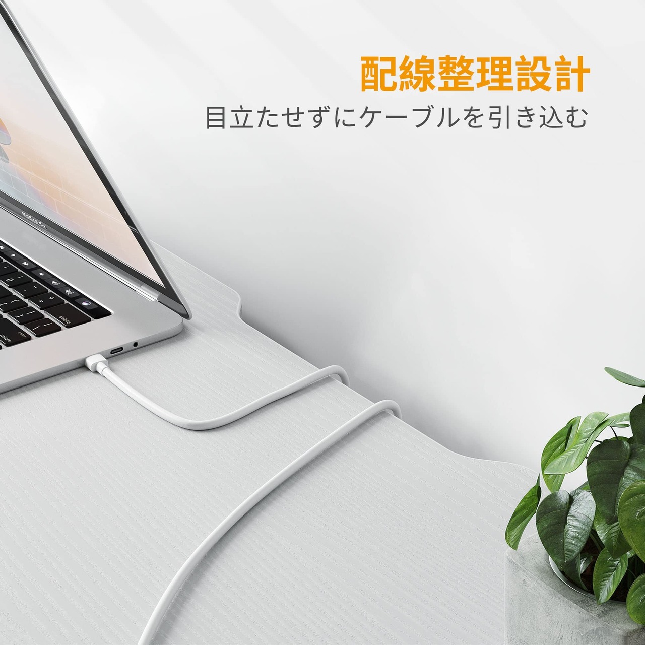 【こだわりのあるデザイン】天板はぶつかり防止の角丸加工しており、天板の奥も長めの穴が空いております。目立たずに配線整理をご希望の方々におすすめします。