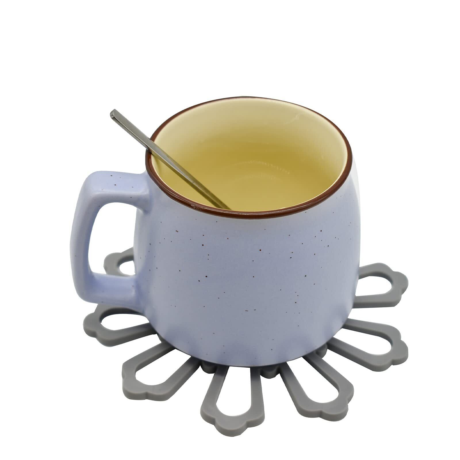 Maydahui 鍋敷き 4個セット 直径15cm シリコン製 おしゃれ 北欧 防水 柔軟 滑り止め 多用途 耐熱鍋敷き 鍋つかみ 栓抜き コースター カップシート インテリア キッチン雑貨 小物 かわいい 鍋置き ポットコースター グレー ホワイト