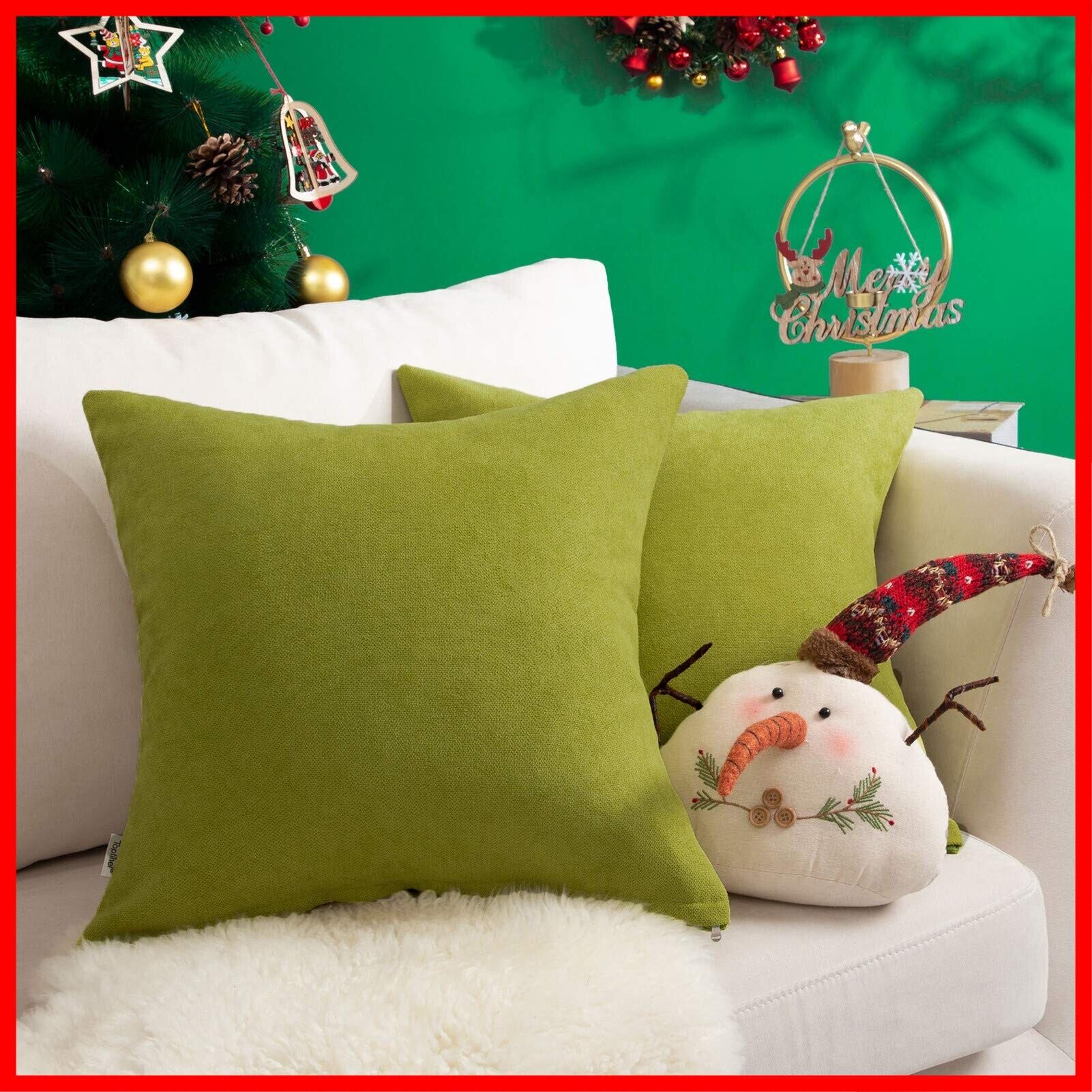 Topfinel クッションカバー リネンっぽい 45×45cm 北欧 おしゃれ 綿麻 無地 ソファ背当て 装飾枕カバー 座布団カバー グリーン 2枚セット(全10色)