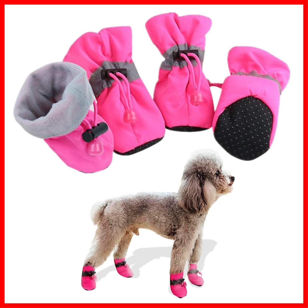 犬用 靴 4個セット ペット シューズ 滑り止め 防水 ブーツ お散歩 お出かけ 室内 肉球保護 足保護 小型犬 中型犬 大型犬 (XXL, ピンク)
