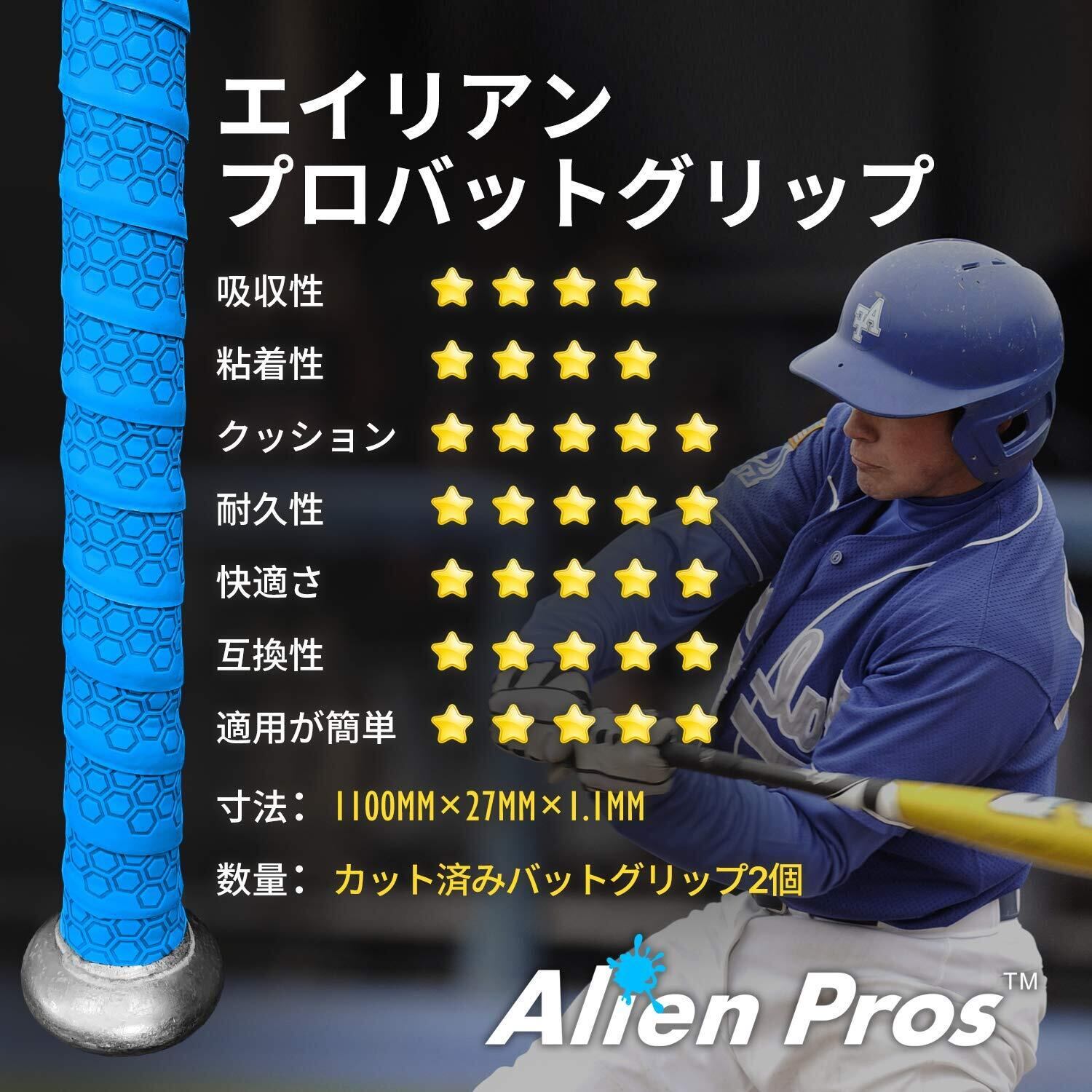 ALIEN PROS 野球用バットグリップテープ 1.1 MM(2パック) - プレカットされたプロ品質のバットテープ - 壮大なホームランのためにバットを包みましょう - 古い野球バットグリップのための交換品 | hananoki