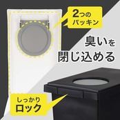 丸いプッシュフタ部分&手開けフタ部分にパッキン付き。Wパッキンで臭い漏れを防ぎます。