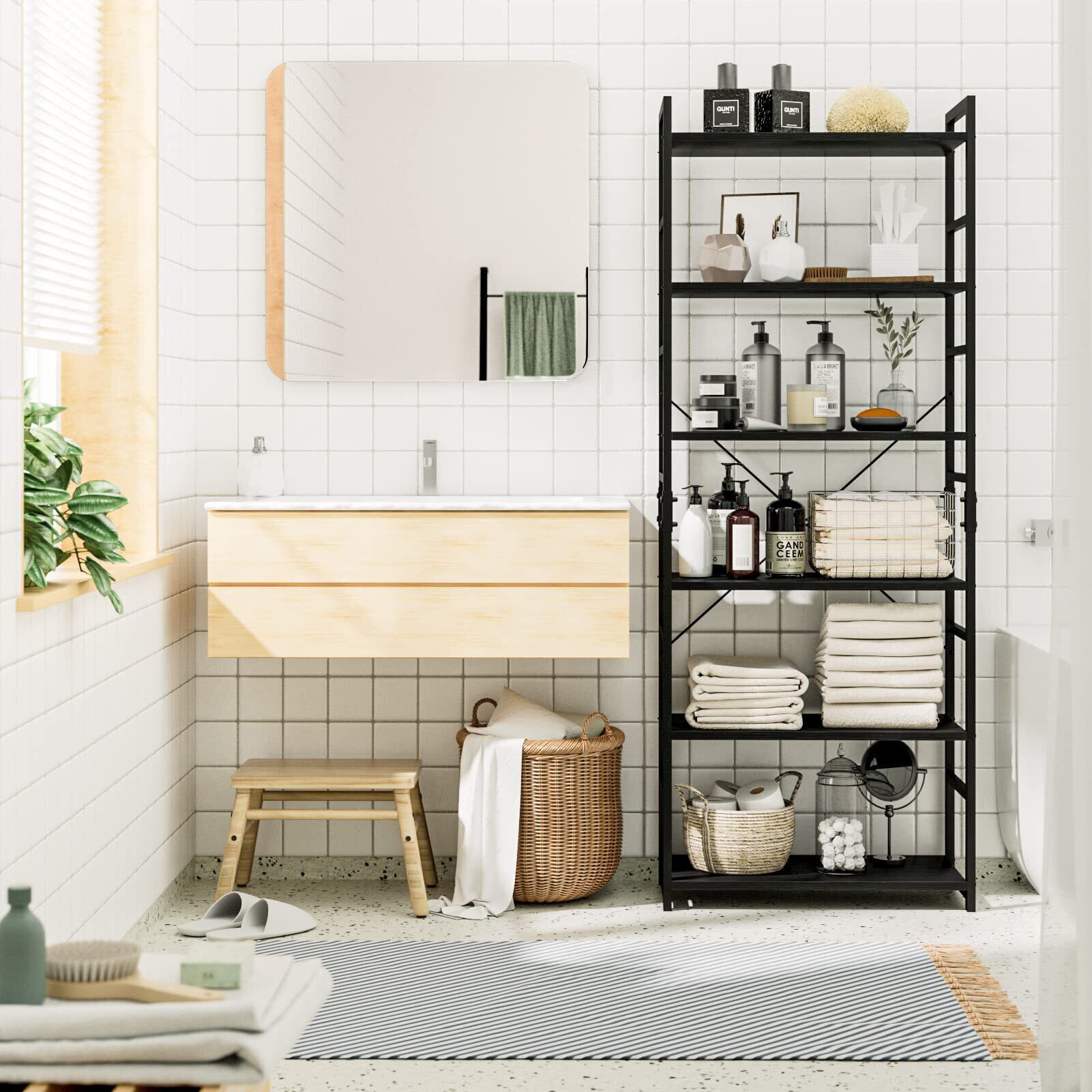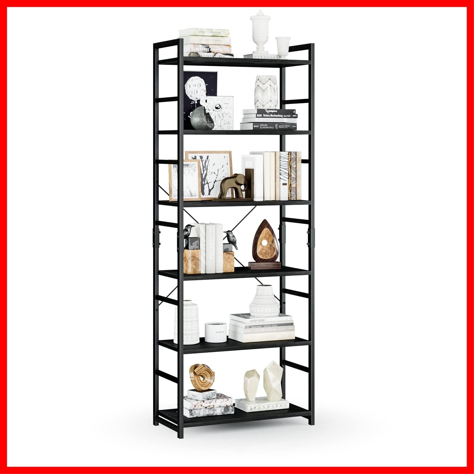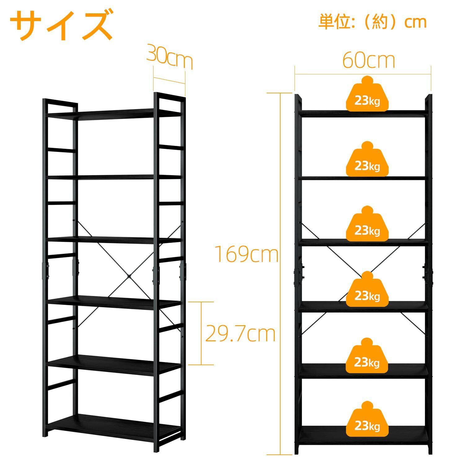 APPOLYN オープンシェルフラック、6段本棚 フリーラック棚、多機能収納ラック、幅60×深さ30×高169cm、木製ラック、寢室、リビングルーム、ホームオフィスなどで使用できます、黒 | hananoki
