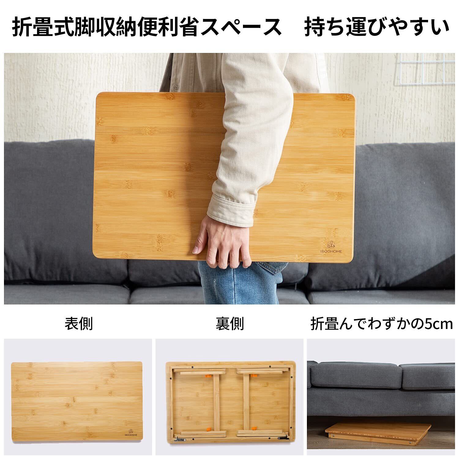ノートパソコンデスク PCスタンド 傷付きにくい 竹製 ベッドテーブル ローテーブル 折りたたみ式 膝上テーブル 高さ調整可能 姿勢改善 多機能 持ち運び簡単 トレーテーブル ナチュラル シンプル デザイン キャンプテーブル 小型 ミニテーブル (55*35cm) | hananoki