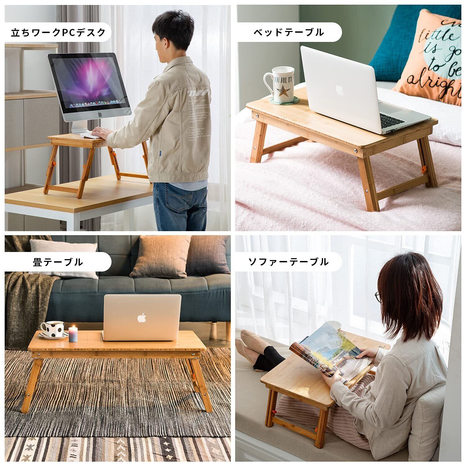 ノートパソコンデスク PCスタンド 傷付きにくい 竹製 ベッドテーブル ローテーブル 折りたたみ式 膝上テーブル 高さ調整可能 姿勢改善 多機能 持ち運び簡単 トレーテーブル ナチュラル シンプル デザイン キャンプテーブル 小型 ミニテーブル (55*35cm)