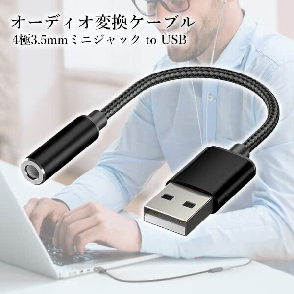 オーディオ変換ケーブル アダプタ 外付けサウンドカード USB to 3.5mm USBポート-4極 3.5mmミニジャック