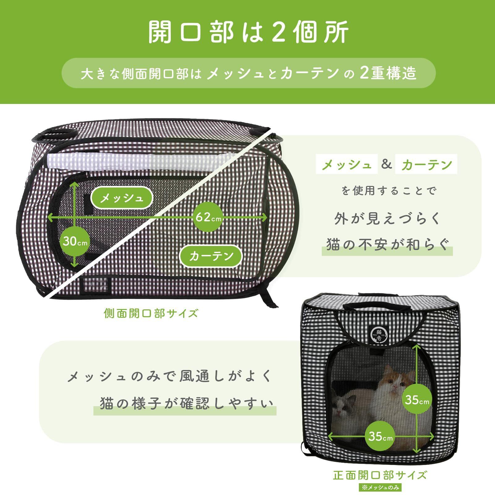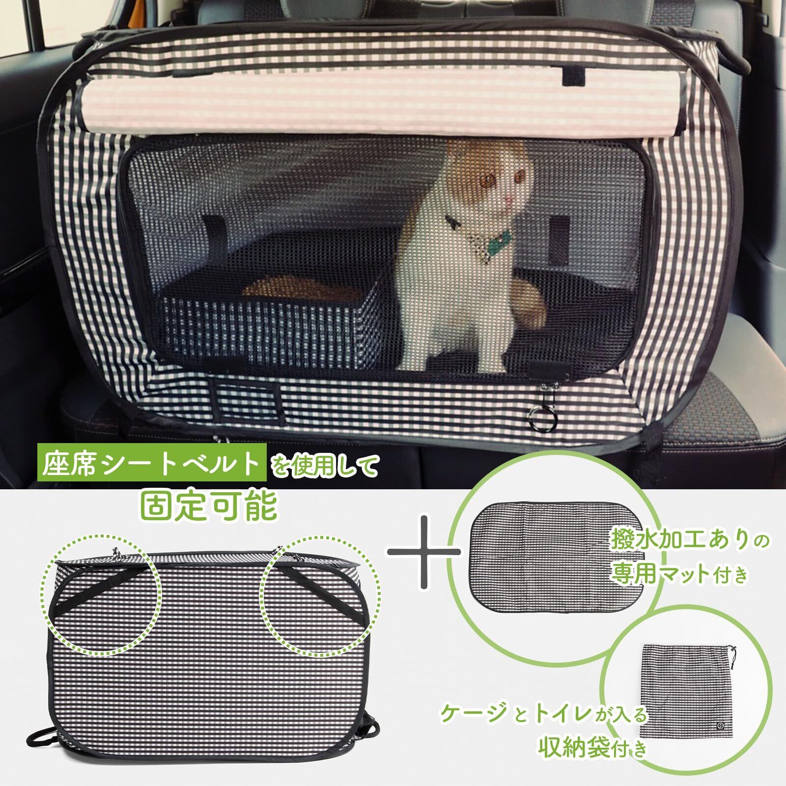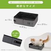 【撥水加工で簡単お掃除&お手入れ】ポータブルケージに使用している生地には撥水加工がされています。猫が中で粗相をしてしまっても、サッと拭くだけできれいにでき、お手入れ簡単で清潔な空間をキープできます。(フリースマットのフリース面を除く)ポータブルトイレ内部の黒い布部分は防水仕様になっています。直接猫砂を入れての使用もOK。汚れが中に染み込んでいかないので、サッと拭き取るだけでお掃除できます。水洗いも可能です。(洗濯機のご使用はお避けください)