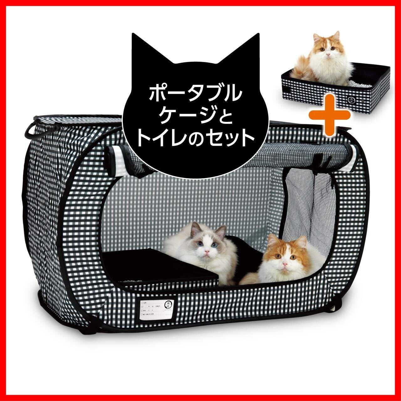 猫壱 ポータブル ケージ トイレ セット 折り畳み可能 防災 移動用 黒 DC-0004-JP 4580471862728