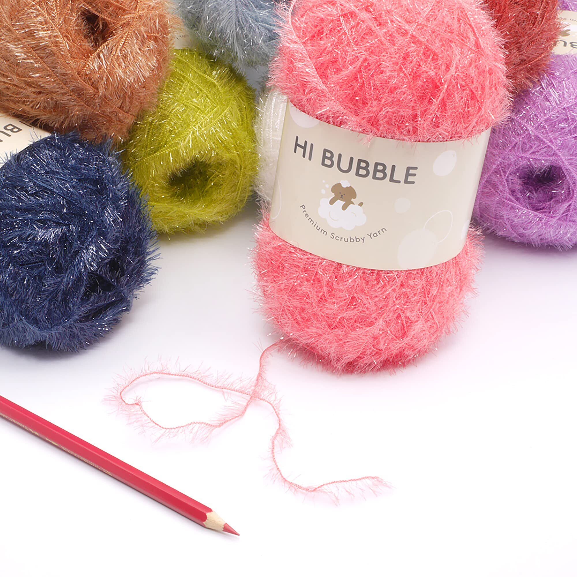 韓国製のキラキラファンシーヤーン。韓国で人気爆発中のエコたわしが編める毛糸です。少量の洗剤できめ細かくて豊かな泡が立つことが特徴です。毛羽部分も柔らかく、優しく手になじみます。