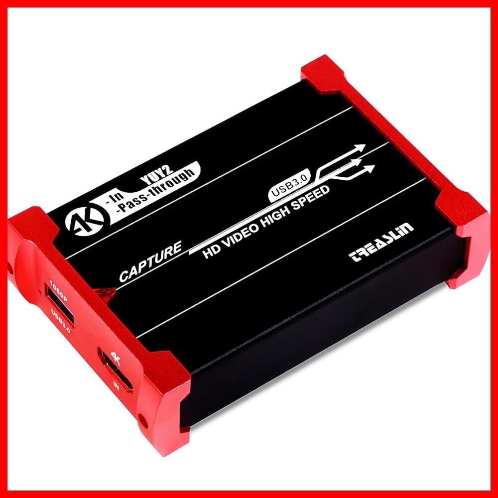 TreasLin USB3.0 HD ビデオキャプチャーボード Switch PS5 PS4 PS3 Xbox Wii U用サポート(4K30FPS入力 4K30FPSパススルー、HD HDMI 1080P60FPSゲーム録画・HDMIビデオ録画・ライブ配信用キャプチャーデバイス)OBS Potplayer YouTube Niconico Twitch HSV321