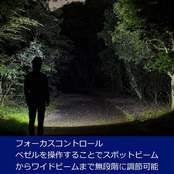 明るさ:High/450ルーメン、Mid/240ルーメン、Eco/50ルーメン、使用電池:専用充電池または単4形アルカリ電池×4本(別売り)