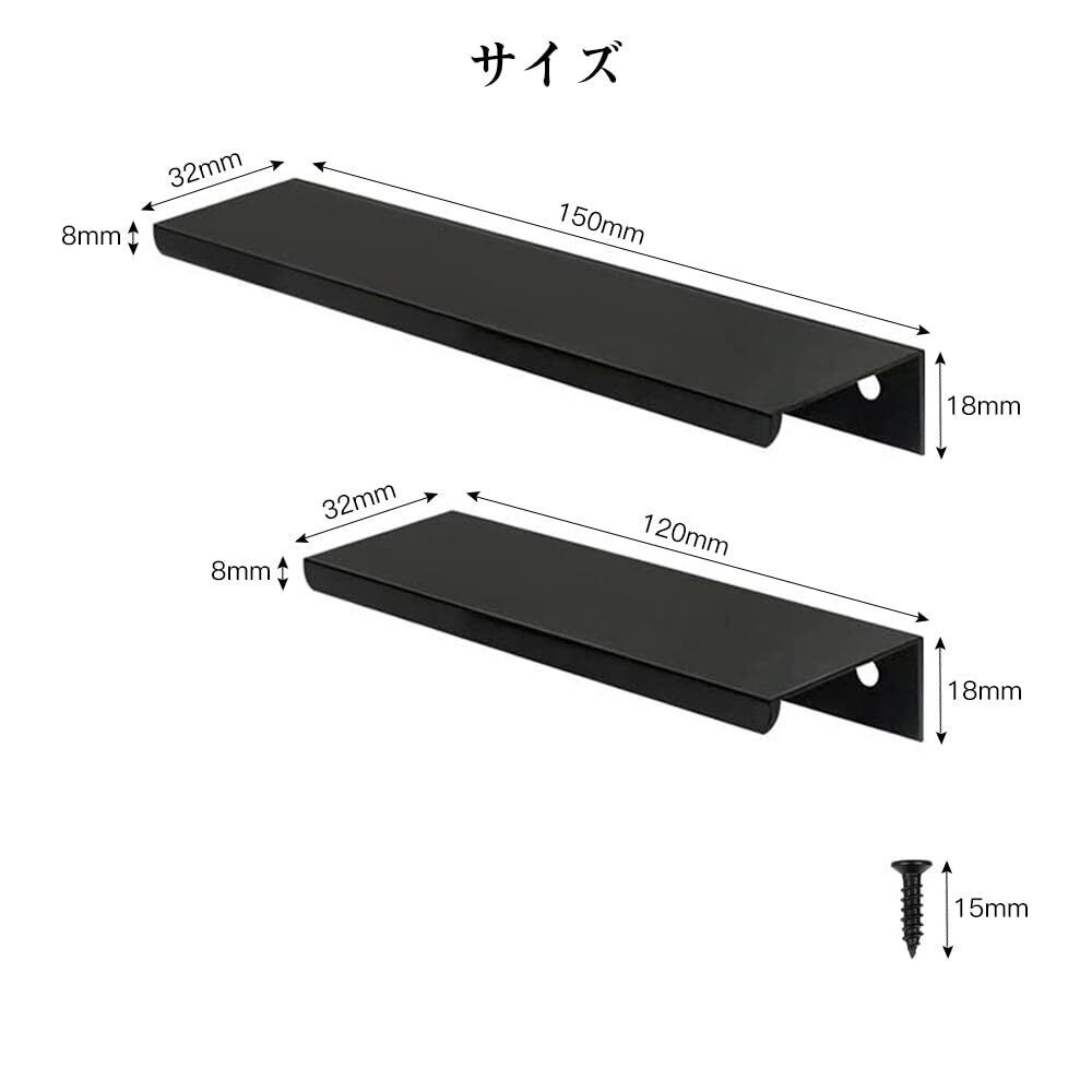 LIANHATA 8個セット ドア取っ手 ネジ付き アルミニウム合金 隠しドアハンドル 手すりドアハンドル 引き出しつまみ 収納棚 戸棚 ノブ 家具の取っ手引き出しつまみ 食器棚 建築金具ツマミ (ブラック)
