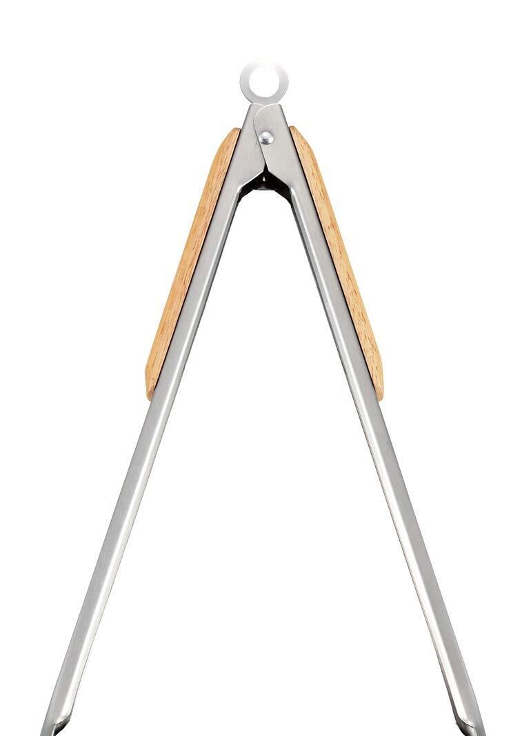 キャプテンスタッグ(CAPTAIN STAG) アウトドア BBQ トング 炭バサミ ウッドグリップ ステンレス製 ストッパー付き 【シルバー/ブラックチタンコート】