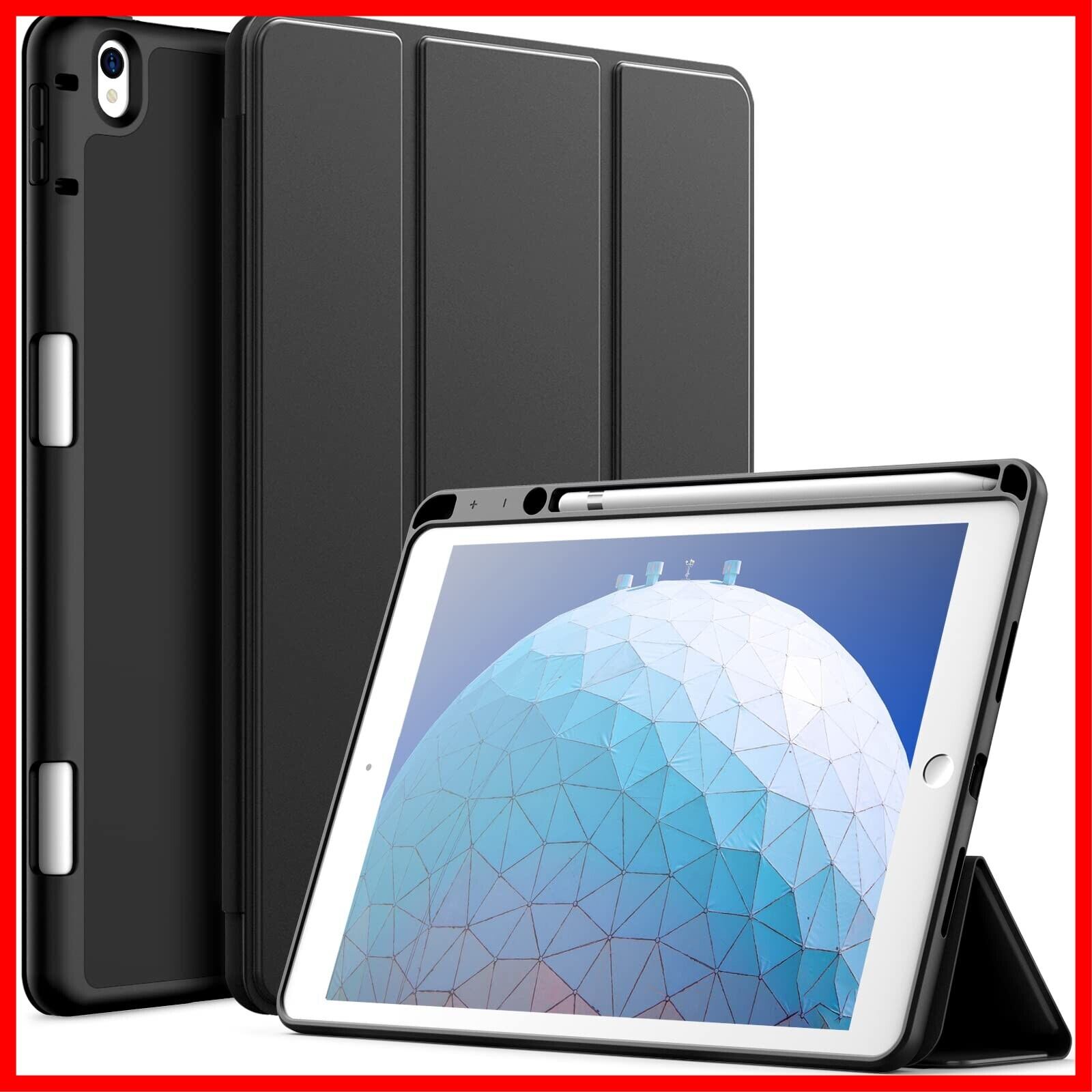 JETech iPad Air 3 (10.5インチ 2019, 第3世代)とiPad Pro 10.5 用Pencilホルダー付き ペンシル ソフトTPUバック スリム保護カバー オートウェイクアップ/スリープ機能付き (ブラック)