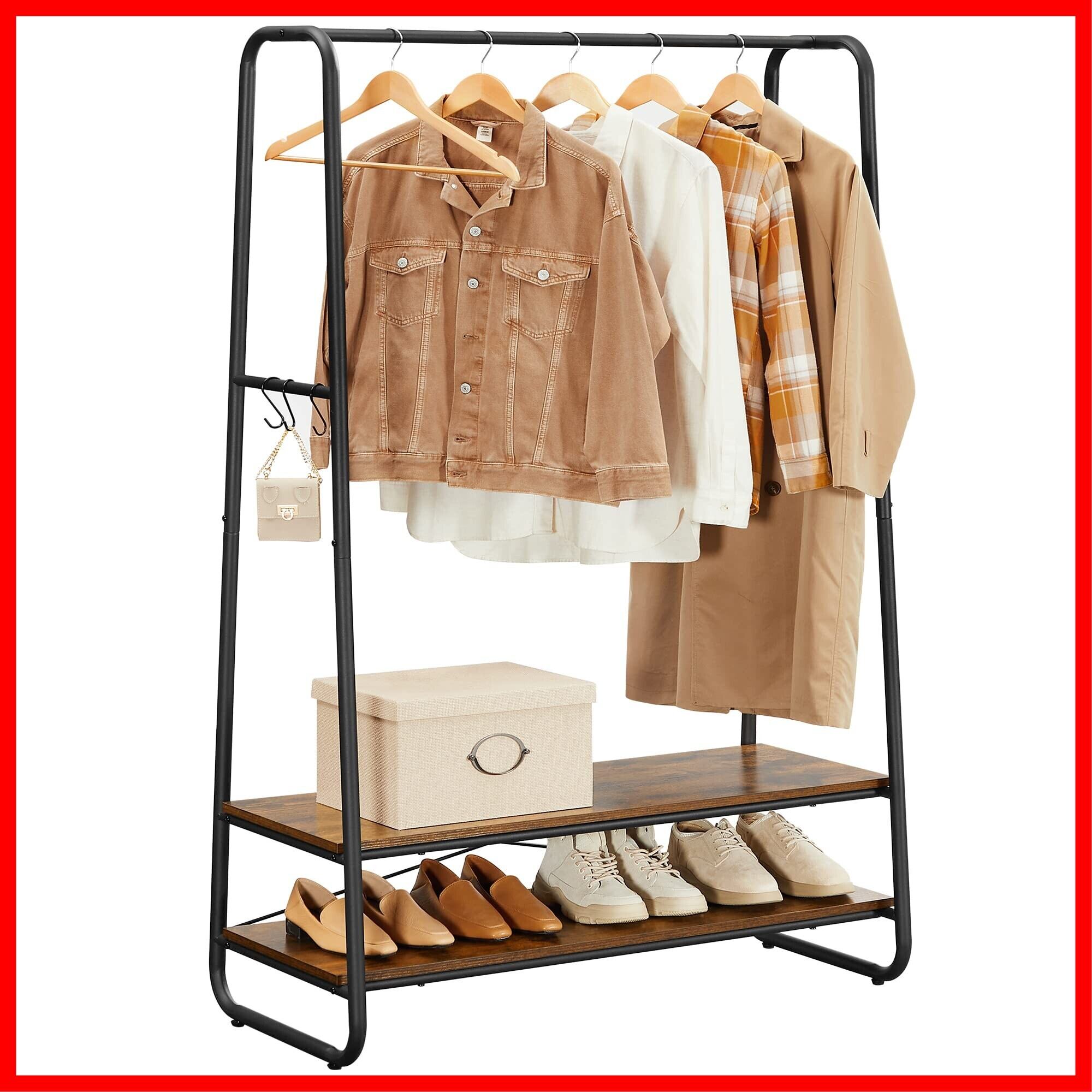 VASAGLE ハンガーラック ヴィンテージ風 棚付き 幅100×奥行45×高さ160cm コートハンガー コートラック 洋服掛け 室内物干し 衣類収納 ハンガーポール マルチハンガーラック 木製 頑丈 ワイド シンプル おしゃれ ちょうどいいサイズ感 北欧風 組立簡単 RGR112B01 | hananoki